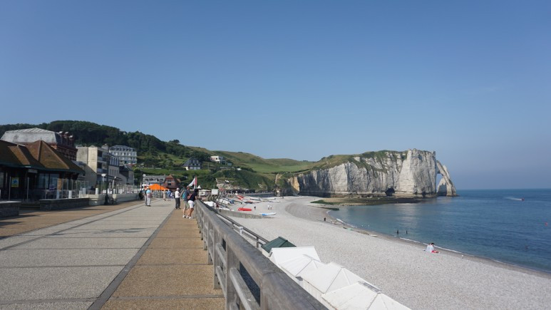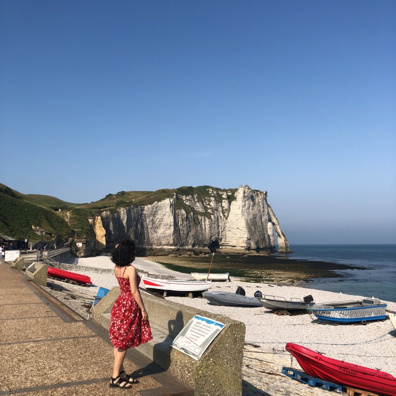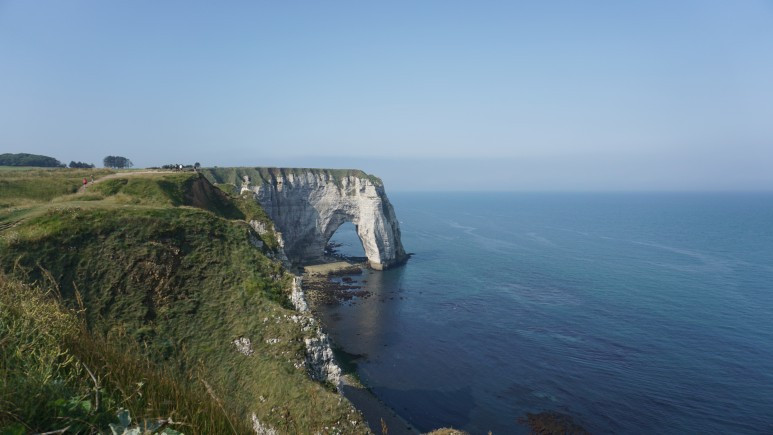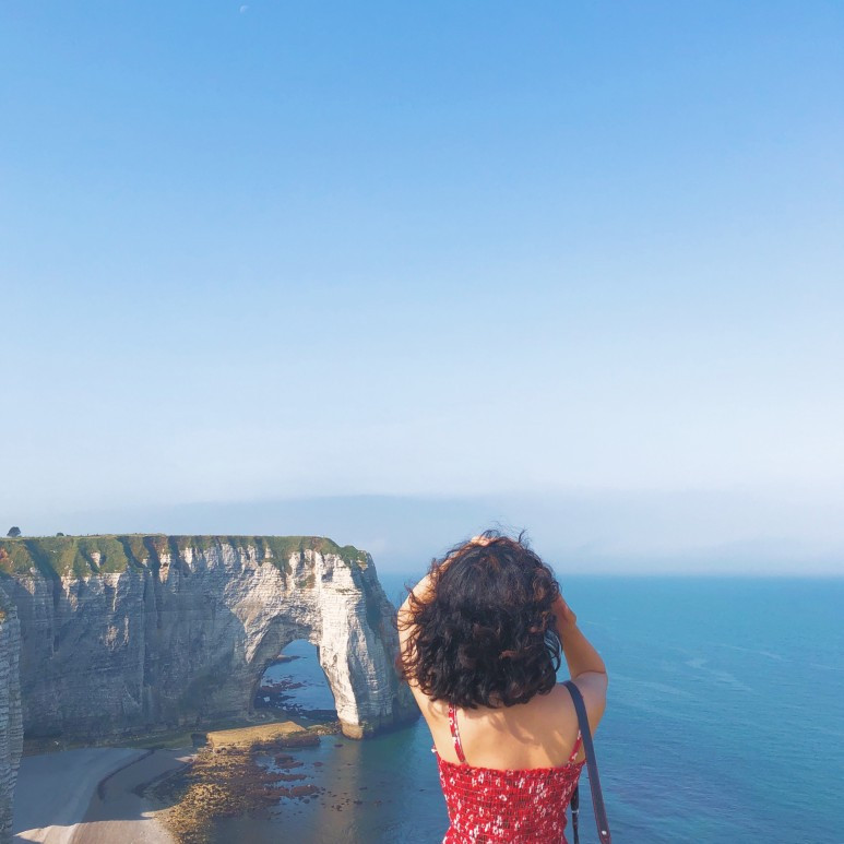한국인이 가이드인 투어 특징: 절대 한 장소만 가지 않는다. 다양하게, 많은 곳을 체험하게 해 준다. 물론 그를 따라갈 수 있는 강인한 체력과 정신력은 필수다. 처음으로 도착한 곳은 북서부 노르망디 해안에 위치한 에트르타였다. 나는 정말 감사하게도 여행을 떠나면 날씨 요정의 축복을 받는 편인데, 이 날도 구름 한 점 없는 화창한 하늘이 에트르타의 시그니처인 하얀 절벽을 더욱 환하게 드러내주었다. 등산하면 질색했던 내가 저절로 그 그림 같은 절벽 쪽으로 발걸음을 옮기고 있었다.