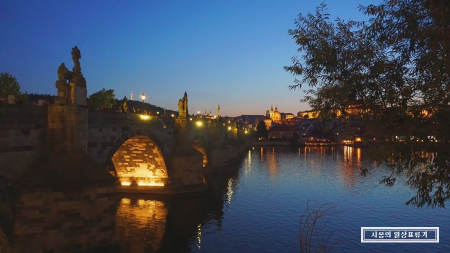 밤이 되면 까를교에도 불이 켜지며 또 다른 그림이 된다.