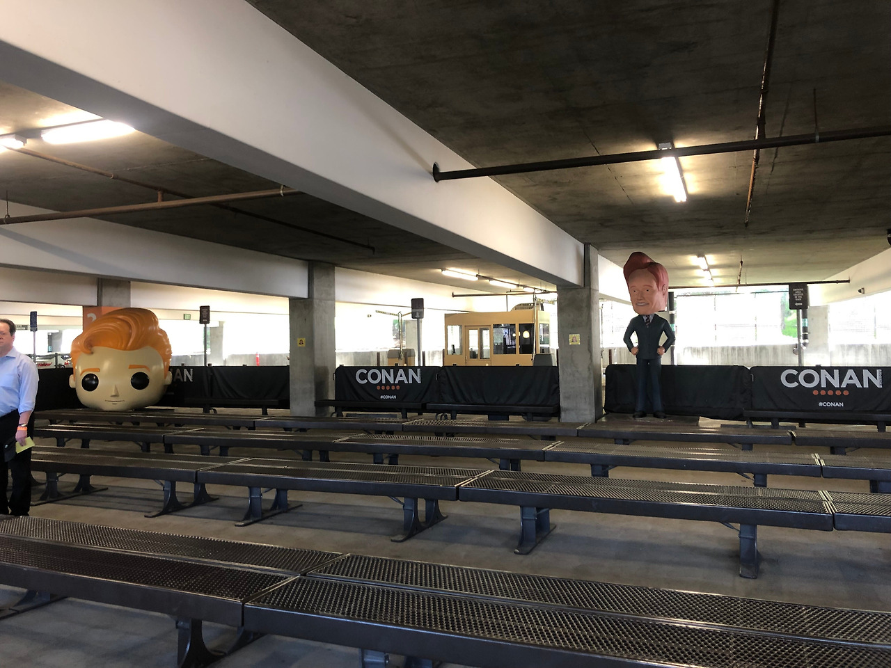 늘 유튜브로 클립만 보다가, 이번 기회로 '코난쇼(Conan Show)'를 직접 방청객으로 관람하는 황금 같은 기회가 생겼다. 현장에서 선착순으로 입장을 마감한다는 소문에 2시간 일찍 워너 브라더스 스튜디오에 도착했다. 스튜디오 주차장부터 영상에서 봤던 소품들이 한가득이어서 기다리는 재미가 쏠쏠했다. 잘생긴 아이돌 콘서트도 아니고 키다리 백인 아저씨의 미국식 농담을 들으러 2시간 줄을 서는 것에 이리 설레는 것도 웃긴 일이었다. 하지만 늘 관심사가 크게 변하지 않고 잔잔하고 꾸준한 나에게 코난쇼 방청은 정말 오랜만에 가슴을 간질간질하게 만들었다.