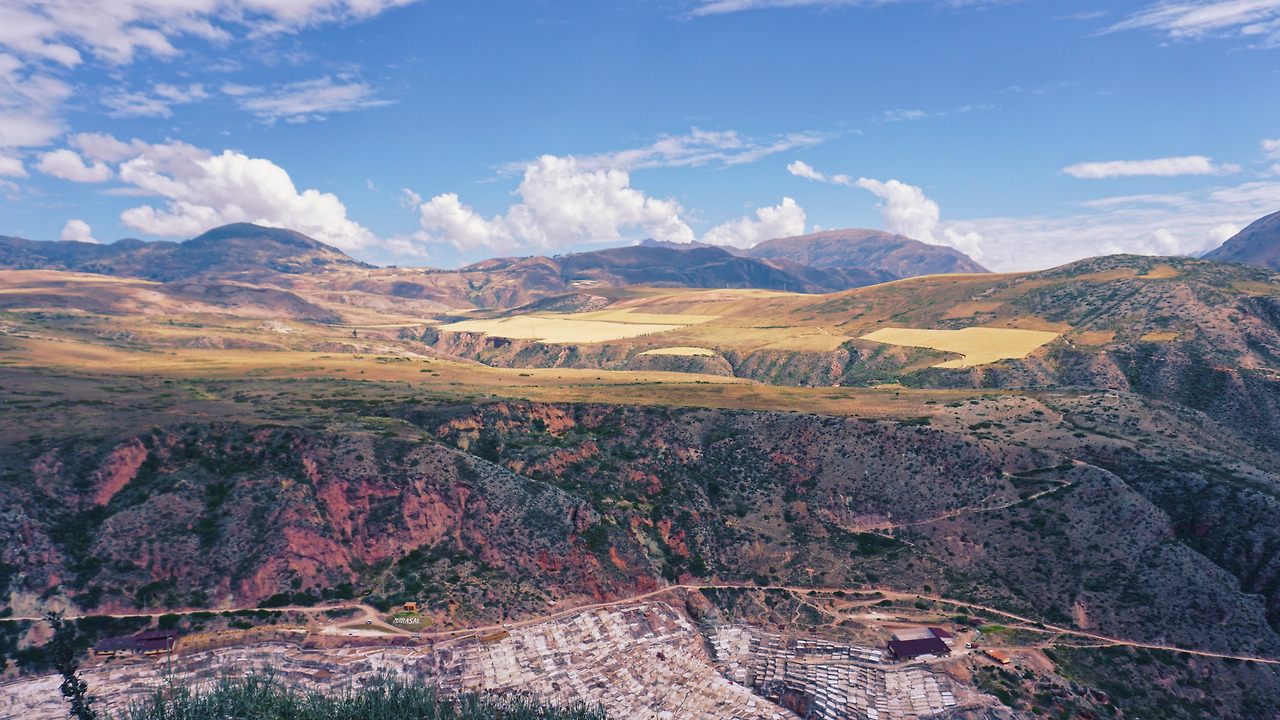 미라스 염전은 산비탈에 수천 개의 하얀 소금 연못이 펼쳐진 계단식 소금 공장이었다. 규모가 엄청났다. 잉카 시대 이전부터 지금까지 전통 방식으로 소금을 생산한다고 한다. 대체 어느 만큼의 소금이 생산되는 걸까, 언덕 아래로 작은 소금 연못들이 수없이 늘어져있다.