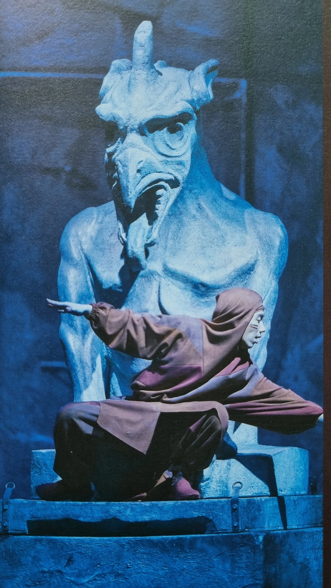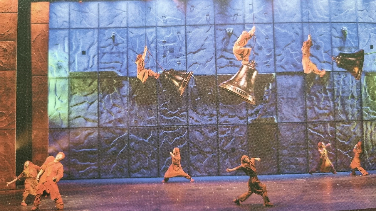 고딕 성당의 낙숫물받이 돌의 머리 장식이라는 가고일 석상 앞, 아슬아슬 높고 좁은 공간 위에서 과감하게 팔다리를 쭉쭉 내뻗는 댄서들. 청동으로 제작된 거대한 종의 한 귀퉁이에 올라타거나 매달려서 빠른 속도로 오고 가며 무대 위를 가로지르는 모습. 도르래가 달린 커다란 문짝 같은 소품을 초고속으로 이리저리 어지럽게 밀고 다니면서 간발의 차이로 서로 부딪히지 않고 역동적으로 움직이는 긴장감과 속도감. 바람처럼 그 위를 넘나들며 쉬지 않고 펼치는 고난도의 개인 동작들. 땅에 머리를 닿지 않고 휙 한 바퀴 두 바퀴 도는 공중제비를 밥 먹듯 능숙하게 해내는 그들의 숙련된 내공.