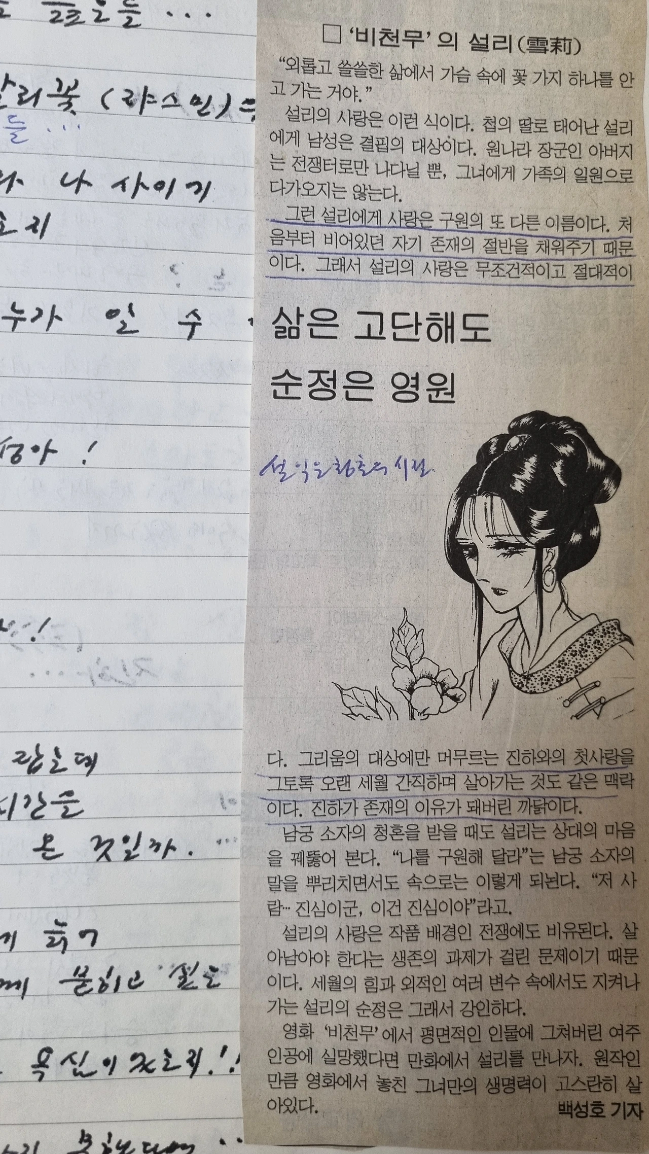 그 시절의 일기장을 들춰 보니 대학 노트 5페이지에 걸쳐 감동과 필사가 기록되어 있다.