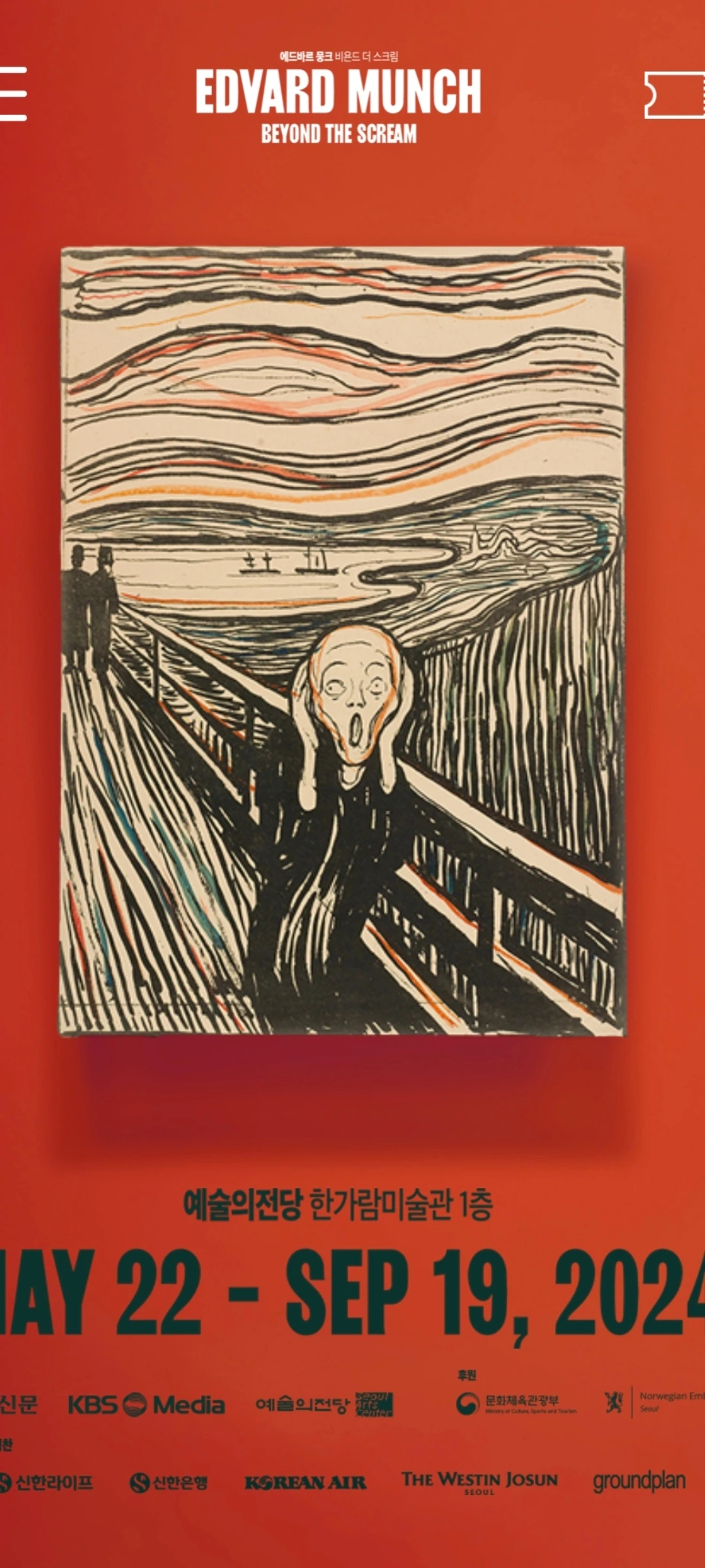애드바르 뭉크 (Edvard Munch, 1863~1944, 노르웨이)는 '절규'라는 작품으로 워낙 대중에게 널리 알려져 있지만 이번 전시회의 제목인 'Beyond The Scream'처럼 140여 점 작품을 통해 뭉크의 그림 세계가 깊고 넓게 펼쳐졌다. 중간중간 써 붙여 놓은 해설이 워낙 좋아서 이해에 큰 도움이 되었다. 뭉크가 그림을 통해 표현하고자 한 그의 인생관이 깊게 와닿았다.