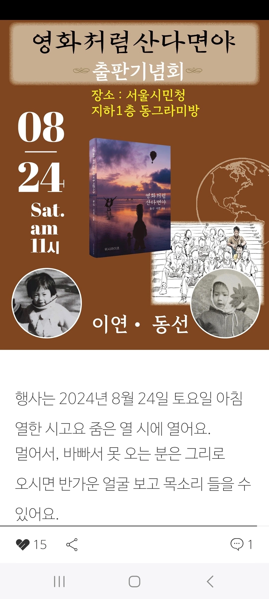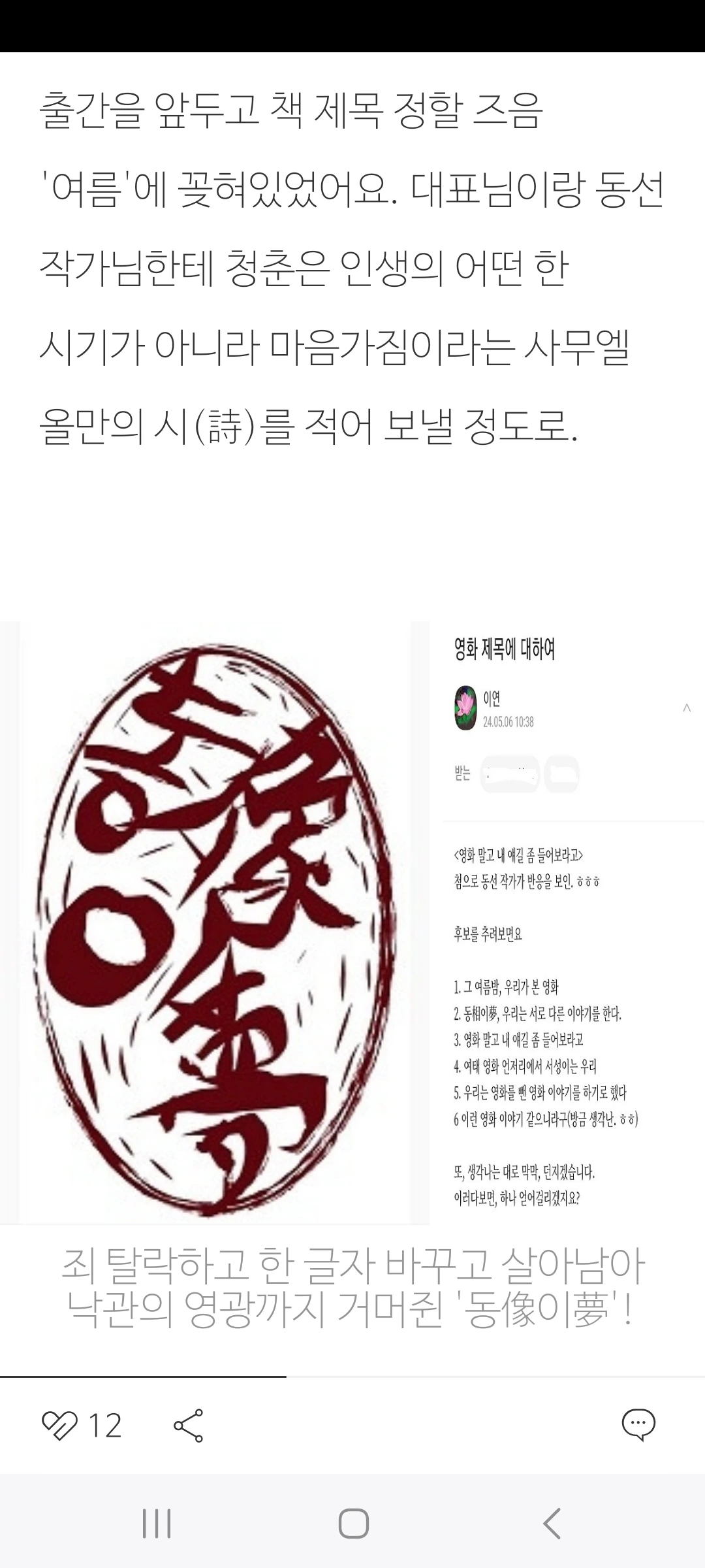 이틀 후로 다가온 출판기념회를 코앞에 두고 있어서일까? 오늘 글은 더 많이 여름 님의 깊은 이야기를 들려준다.