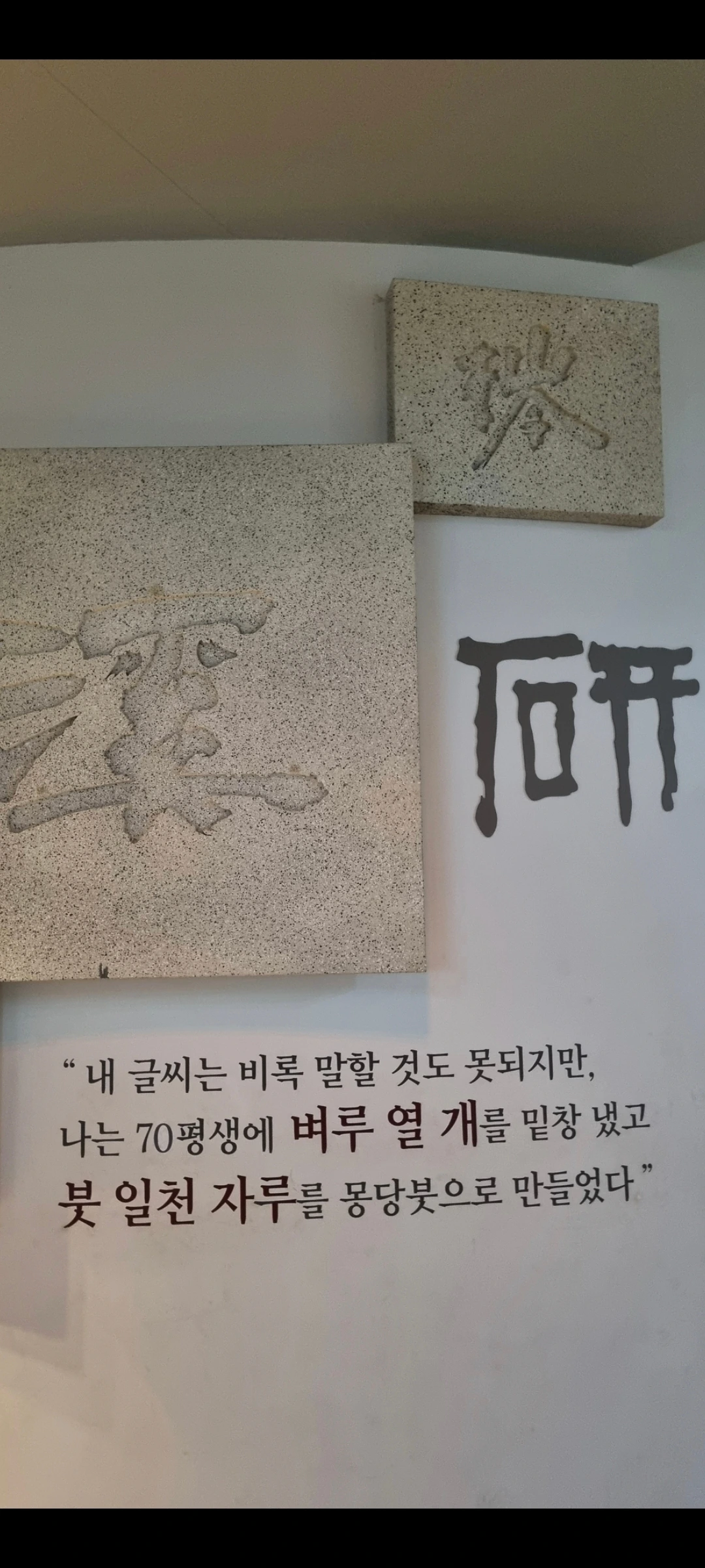 1967년 동백림 사건에 연루되어 2년 간의 옥고를 치른 후 1983년 프랑스에 귀화하고 1985년 85세로 세상을 떠났다는 이응로 화백. 어려운 시대의 어려운 시간을 살아온 힘든 삶의 흔적이 여기에도 남아 있었다.