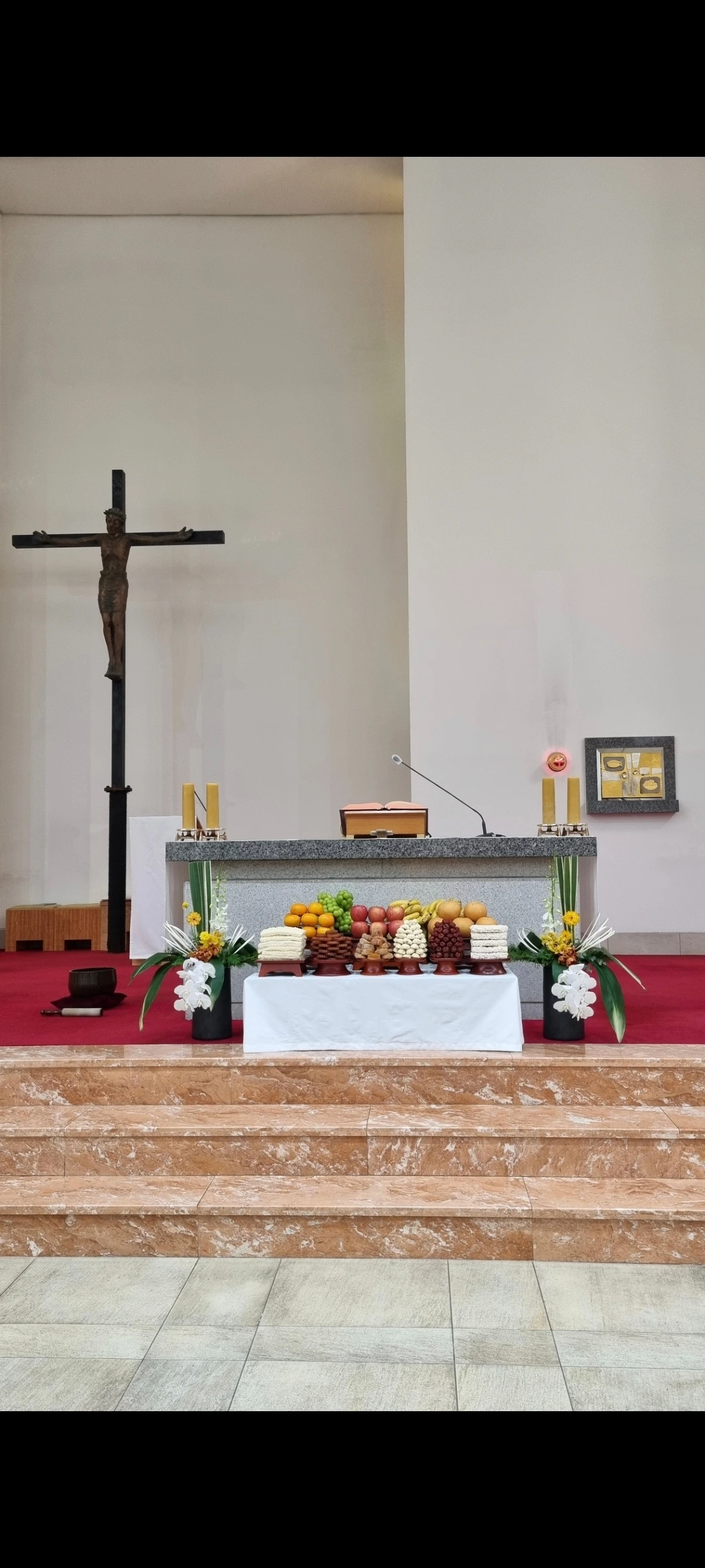 제대 앞에 차려진 제례상에 두 명씩 줄 지어 묵례와 분향을 하는 순서에만 20여 분이 소요되었다. 연도가 너댓 번 반복되었다. 아가들을 데리고 오지 않은 게 천만다행이다.