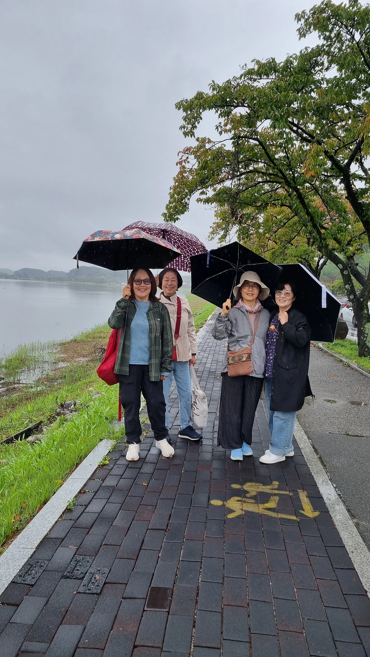 선교장을 향해 길을 잡았다. 도보로 1시간 거리라고 맵이 알려 준다. 서늘한 가을부슬비가 오락가락 뿌리다 멈추길 반복한다. 우리들의 우산도 펴졌다 접혔다를 거듭한다. 경포호와 강릉생태저류지 산책길을 거쳤다. 깨끗하게 펼쳐지는 물과 풀과 꽃과 새, 하늘과 땅, 그리고 나무들. 나지막이 깔리는 가을의 정취가 그윽하다.