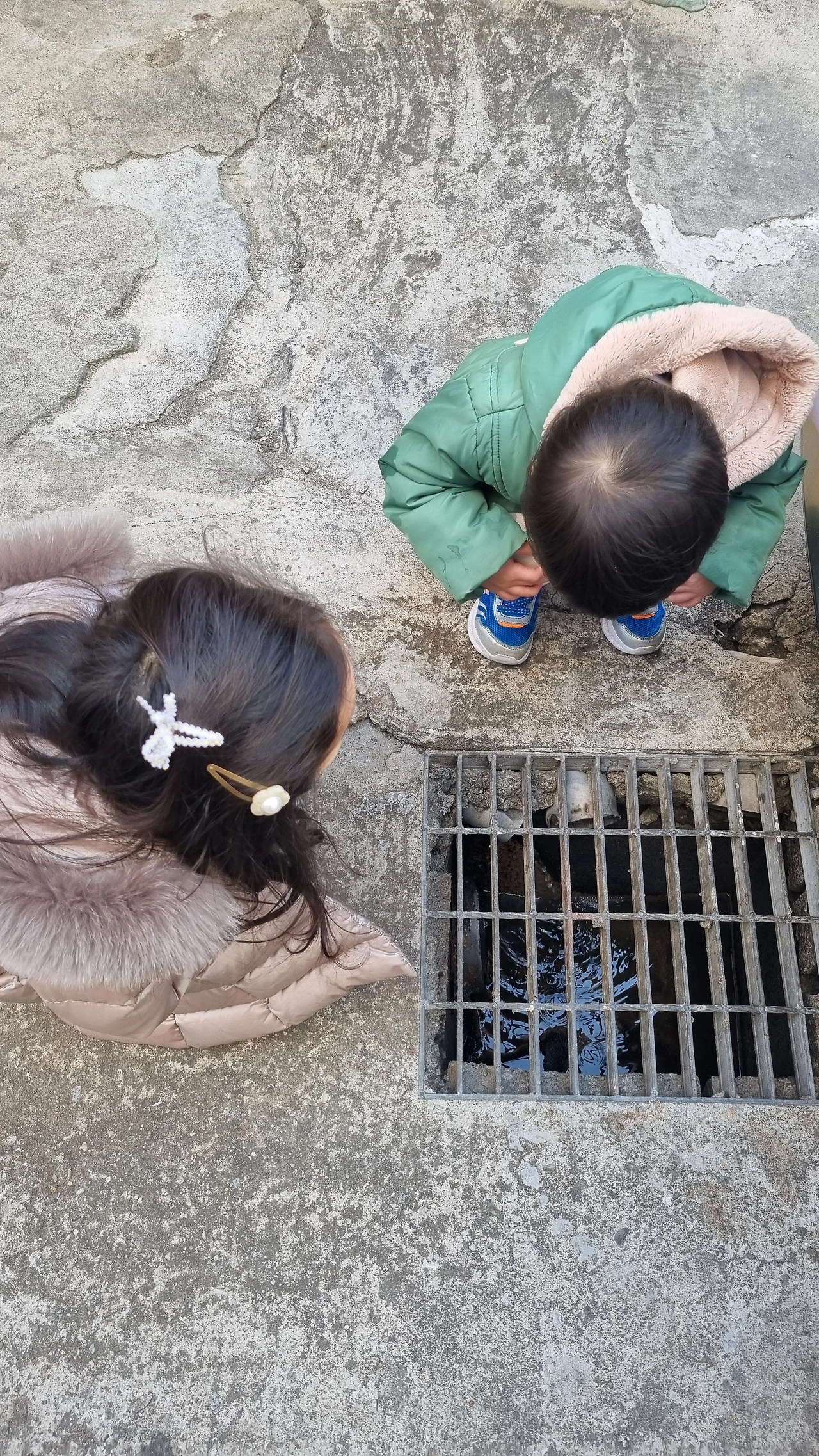 억지 부리지 않고 할머니와 잘 타협했지만 아쉬운 마음이 한껏 담긴 말이다. 더 골라 보라는 말이 입 밖으로 나오려는 것을 이번에는 내가 참았다. 다시 집으로 돌아오는 길, 꽤 걸어야 한다. 다행히 날씨는 그리 춥지 않다. 복장과 신발도 제대로 갖춰졌다. 비눗방울 놀이가 급하다. 문방구 지하계단을 올라오자 마침 건물 옆 공터가 있다. 주차장인 듯 승용차 한 대가 서 있을 뿐이다. 두 녀석은 비눗방울 장난감을 꺼내 신나게 논다. 그것도 잠시, 발 밑에서 졸졸졸 소리를 내는 하수구 아래로 흐르는 물에 정신을 뺏긴다. 역시 생명력 있는 많은 것들은 끊임없이 움직이는 것들에 끌리는 모양이다. 다시 집을 향해 갈 길을 재촉해서 발걸음을 옮겼다. 오는 길에 맛있는 냄새가 난다고 손녀가 관심을 보였던 음식점 앞을 다시 지나가게 되었다. 소리, 냄새, 촉감, 모든 것이 예민하고 빠른 손녀가 다시 말한다.