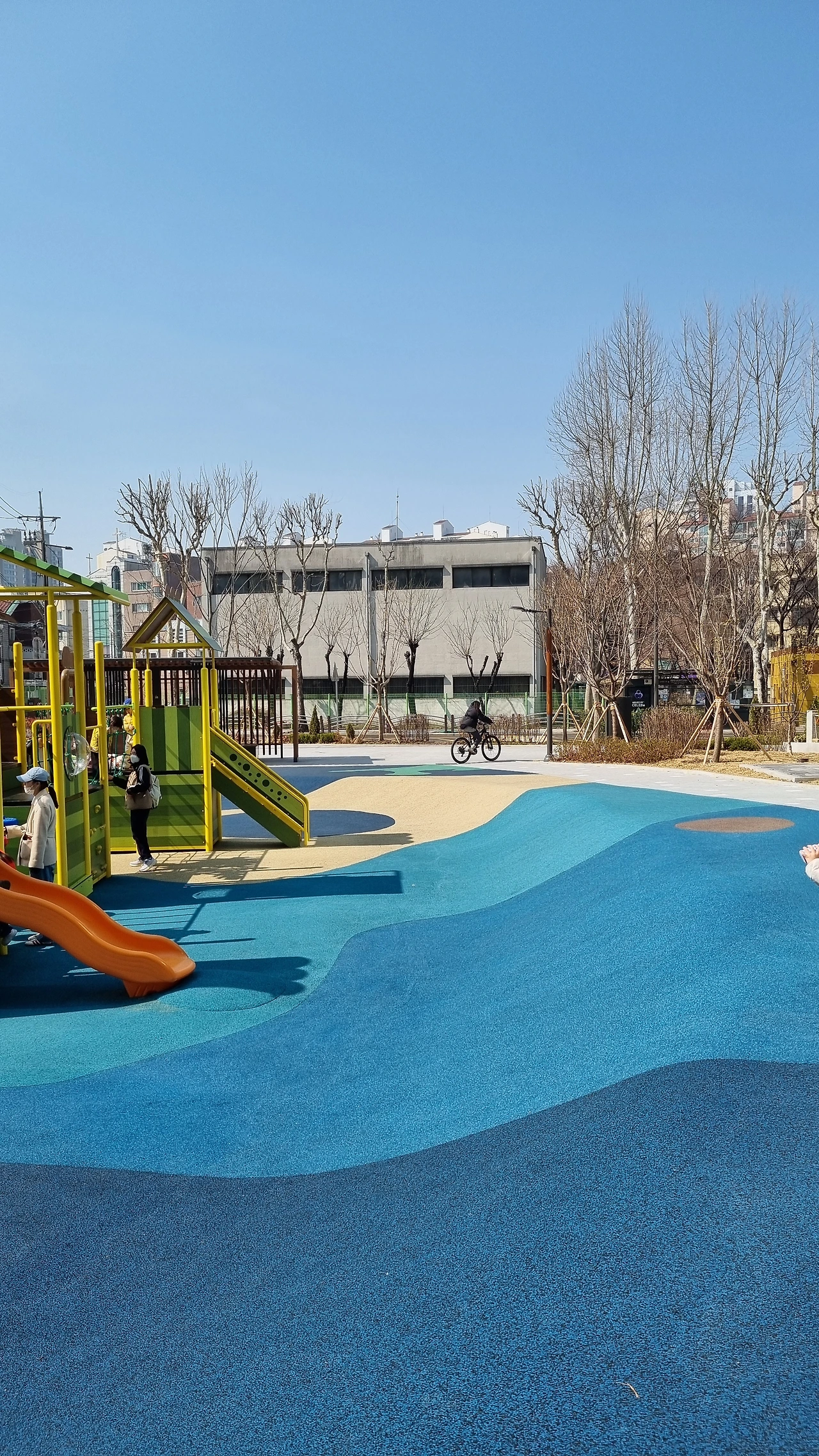 아주머니가 준비해 주신 말랑말랑 쫀득쫀득 떡국 점심을 먹고 외출 준비를 서둘렀다. 목적지는 우리 아파트 단지 내 놀이터. 지하철로 1 구역.