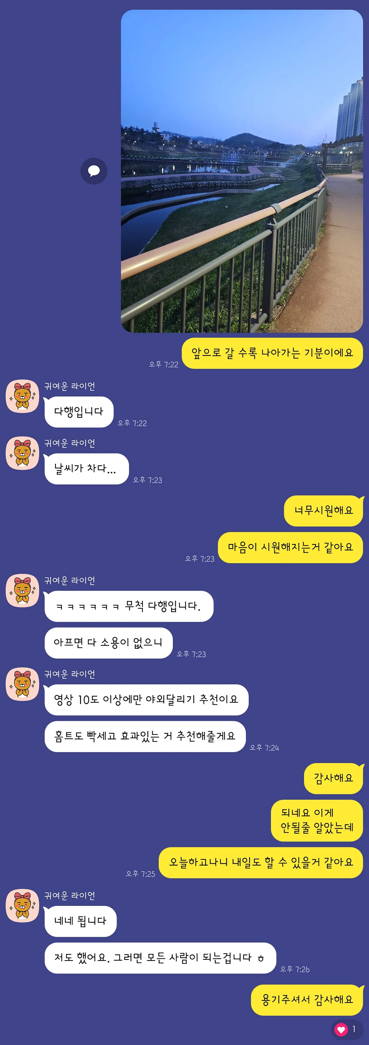 흘리는 땀만큼 가벼워지는 몸도, 늘어나는 체력도, 좋아지는 기분도, 너무 좋다.