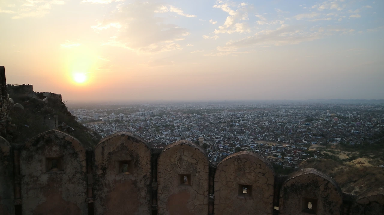 나하가르 성은 애당초 방문 계획이 전혀 없었던 곳이었는데, 이곳은 알고 보니 자이푸르의 일몰과 야경을 감상할 수 있는 곳이었다. 그래서 오후 5시가 넘었지만 많은 사람들이 나하가르 성에 오르고 있었다. 그리고 일몰을 편하게 감상할 수 있는 곳들에는 사람들로 가득했었다. 우리도 늦지 않게 자리를 잡기 위해서 빠른 걸음으로 성을 빙글빙글 돌다 겨우 자리를 잡고 일몰을 감상할 수 있었다. 이번 인도 여행을 시작하면서 어느 곳에 가만히 앉아서 도시를 감상할 수 있는 시간이 없어 아쉬웠는데, 자이푸르의 일몰은 그 아쉬움을 해소시켜 주었다. 무엇보다도 자이푸르에 들어서면서부터 더 이상 주변의 사람들을 의식하면서 괜히 불안해하지 않아도 되어서 좋았다. 뉴델리에서는 갑자기 다가와서 말을 거는 사람도 있었고, 외국인을 바라보는 눈이 부담스러워서 계속해서 긴장하면서 길을 걸어 다녀야 했지만 자이푸르는 길에서 말을 거는 사람도 외국인을 바라보는 시선도 없어서 편안했었다.