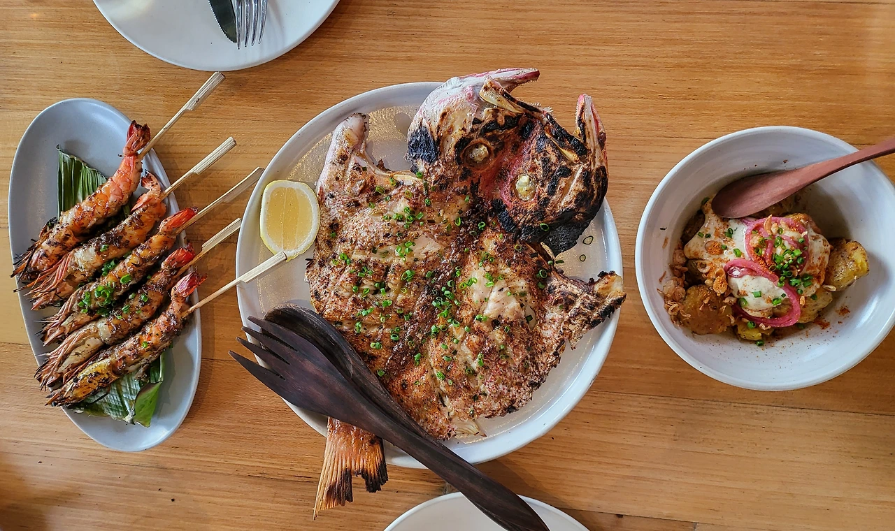 우리 역시 뒤처질세라 식당으로 보이는 테이블의 자리에 앉아 주문을 하려 했는데, 이곳은 인도네시아 현지식, 이탈리안 식, 해산물 요리 등 다양한 선택지의 식당들이 있지만 우리 같이 워크인을 하는 경우에는 해당 메뉴를 파는 식당의 자리에서만 요리를 주문할 수 있었다. 그래서 한 가지 테마를 정해야 했는데, 발리에 온만큼이나 해산물을 먹는 것은 당연하다고 생각했기 때문에 Ijen이라는 레스토랑에서 다양한 해산물 요리를 즐기기로 결정했다. Ijen의 해산물 요리는 분명 하나같이 모두 맛있었지만 나의 입맛을 사로잡은 것은 새우구이도 물고기 요리도 아닌 평범한 빵 한 조각이었다. 특히 이곳의 특제 버터소스를 발라먹는 빵 한 조각은 졸깃한 식감과 부드러운 버터의 풍미를 느낄 수 있었고, 다른 해산물 요리와 함께 곁들이기에도 손색없는 메뉴였다. 아마 다시 발리에 방문해서 Ijen을 방문한다면, 그것은 풍경도 요리도 아닌 빵 때문일 것이다.
