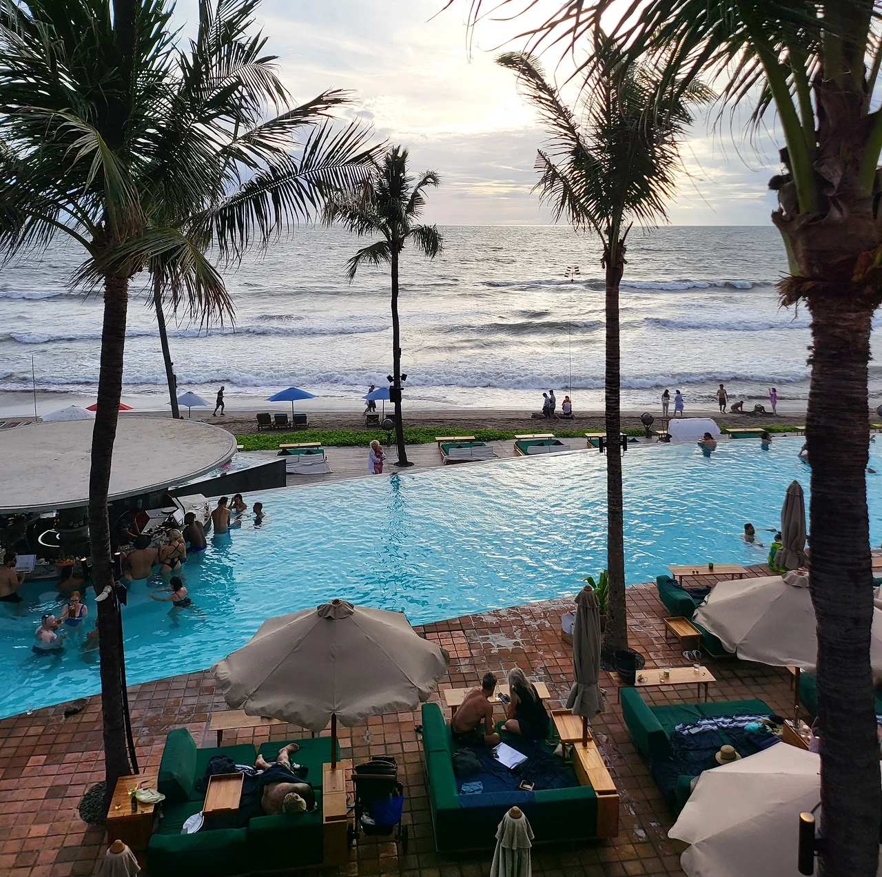 그렇게 오후 내내 수구와 물장구를 치며 숙소에서 시간을 보내고 난 뒤, 발리에서 유명한 비치 클럽(Beach Club)중 한 곳인 포테이토 헤드(Potato Head)로 저녁을 먹으러 갔다. 유명한 해변이 많은 발리는 해수욕을 즐기는 해변과 해변가 주변에 술과 음식들을 마시며 즐길 수 있는 포테이토 헤드와 같은 비치클럽들이 즐비하다. 우리는 저녁 시간쯤에 도착했는데 이미 테이블석은 만석이었고, 풀 안에 위치한 스탠딩 바의 주변에도 사람들로 가득했다. 테이블에 앉아 있는 사람들은 모두 테이블 위에 푸짐하게 놓인 음식과 술을 즐기며 저마다 행복한 순간을 즐기고 있었다.