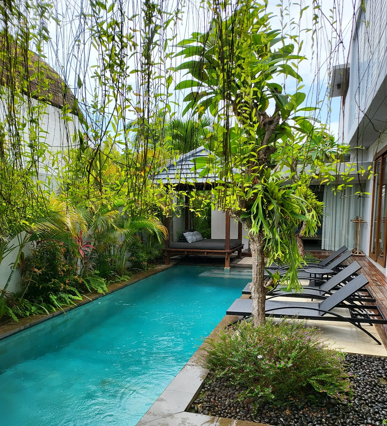 이렇게 변덕쟁이인 발리지만 그래도 여전히 발리는 모두에게 사랑받는 신혼여행지이다. 다양한 취향을 가진 사람들이 신혼여행지로 오는 발리의 곳곳에는 수많은 숙소의 선택지가 있기 때문에 여행을 준비하며 숙소를 결정하는 것이 가장 어려운 일이었다. 숙소의 위치부터 시작해서 방과 화장실의 개수, 수영장 포함 여부 등 다양한 조건을 살펴보아야 했고, 이러한 조건에는 풀빌라가 최선인 것으로 결론지었다. 풀빌라로 결정한 가장 큰 이유는 개인의 침실이 있으면서도 우리끼리만의 넓은 공간도 충분하고, 다른 사람들의 눈치를 보지 않고 놀 수 있는 풀이 있기 때문이었다.
