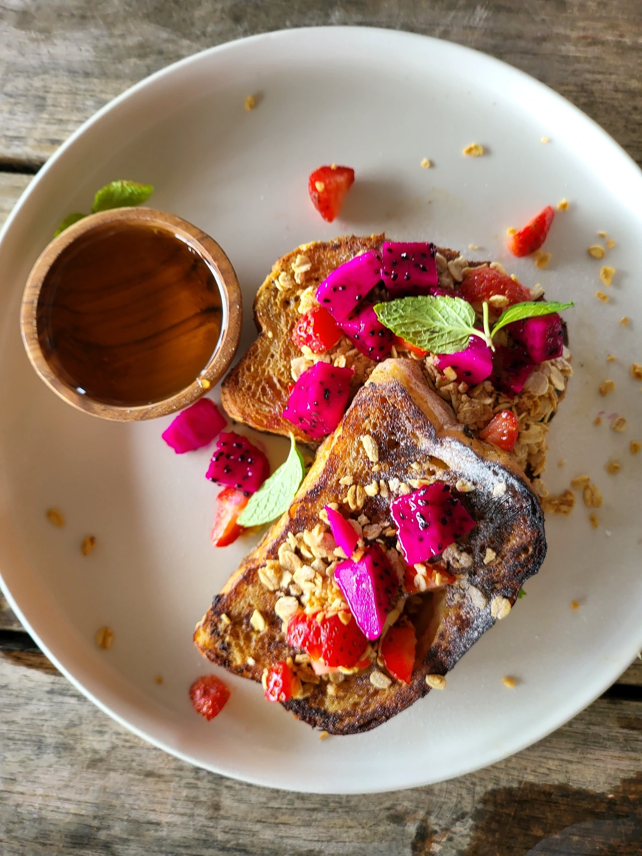 또한 발리는 입과 위가 쉴 수 없을 만큼 곳곳에 맛집들이 많기 때문에 우리 역시 브런치를 먹고 난 후에 주변에 위치한 카페로 발걸음을 옮겼다. 하지만 이곳 카페들 역시 브런치 혹은 식사메뉴를 겸하고 있는 곳들이 많았기 때문에 생각보다 오랜 시간을 기다려야 했고, 야외에 위치해 있었기 때문에 선풍기로는 발리의 더위를 날려주기에는 조금 아쉬운 부분도 있는 곳들이 많았다. 그래도 30분 정도 기다렸다 들어간 Suka 카페에서 맛본 파운드케이크 같았던 바나나 브레드는 배가 부른 상태여도 포크질을 멈출 수 없게 만드는 맛이었다.