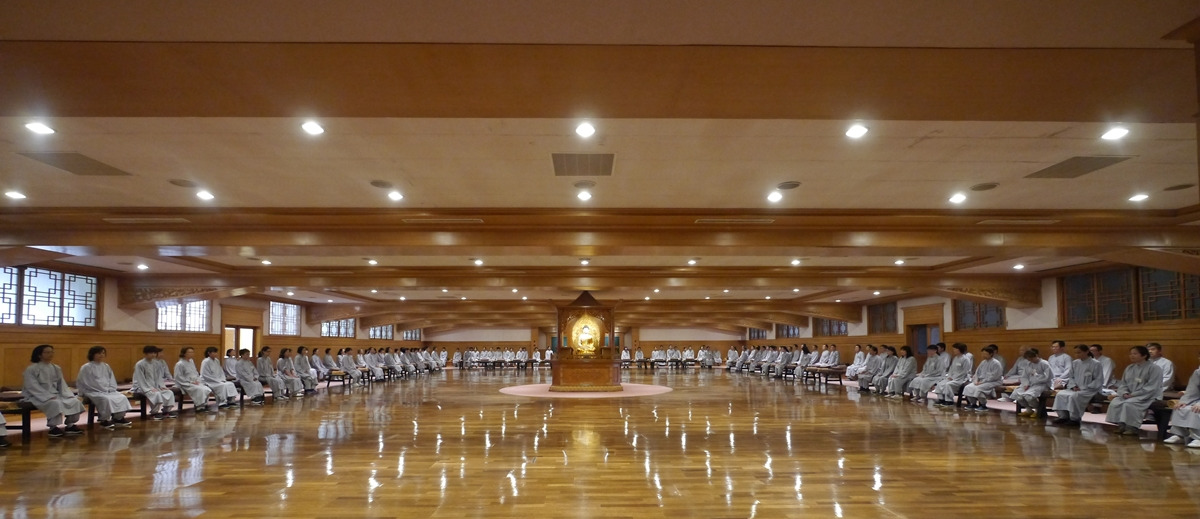 대부분의 일과는 명상으로써의 참선과 포행이라 일컫는 빠른 걷기가 다야. 참선은 오전에 4번, 오후에 5번이며, 앉아 있는 시간은 20분부터 50분까지 다양한데, 하루에 참선은 총 305분이었어. 시간으로 계산하면 5시간 정도지. 참선 자리에는 고동색의 방석이 깔려 있으며, 엉덩이 쪽에 상체를 높여주는 고동색 쿠션이 한 개, 그리고 무릎을 보호하기 위한 비치 타월 크기의 황토색 수건이 오른쪽에 놓여있어. 이곳에서는 습기 때문인지, 아니면 에어컨 냉기 때문인지 참선 때마다 수건으로 하체를 덮어주더라구. 포행은 참선으로 굳은 몸을 풀어주고 활기를 넣어줬는데, 그것도 일종의 명상이 아닌가 싶어.