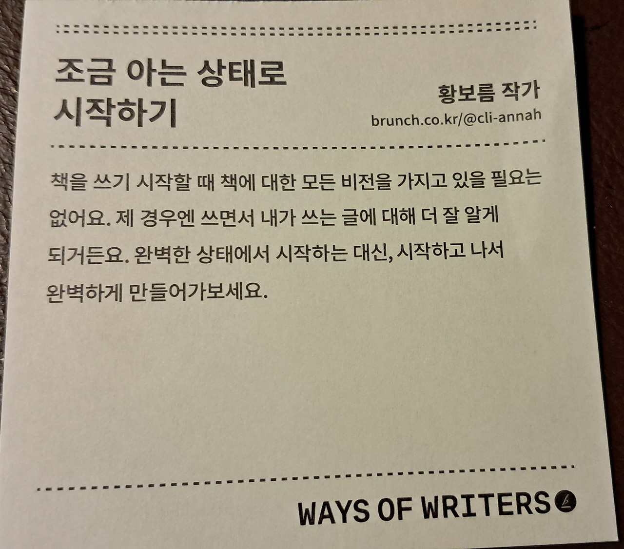 "조금 아는 상태로 시작하기" 황보름 작가의 말 카드가 위로가 된다.