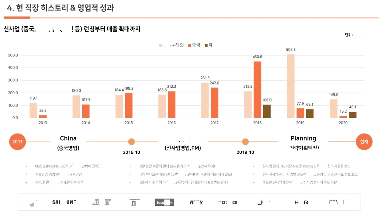 이력서는 숫자 위주로 정확히 써 내려갔다. 나의 이력을 이해하기 쉽도록 최대한 단순하게 작성하려고 노력했다. 중국 사업 매출을 수십 배 성장시켰던 영업 직무부터, 글로벌 Q사로 사업 전환과 장기 연속성을 일궈낸 PM 업무, 그리고 세 개의 신사업을 탄생시킨 기획 업무까지, 나의 10년은 빈틈없이 채워져 있었다. 굳이 수식어를 덧붙일 필요도, 성과를 부풀릴 필요도 없었다. 그저 있는 그대로 나를 편견 없이 봐주길 바랐다.