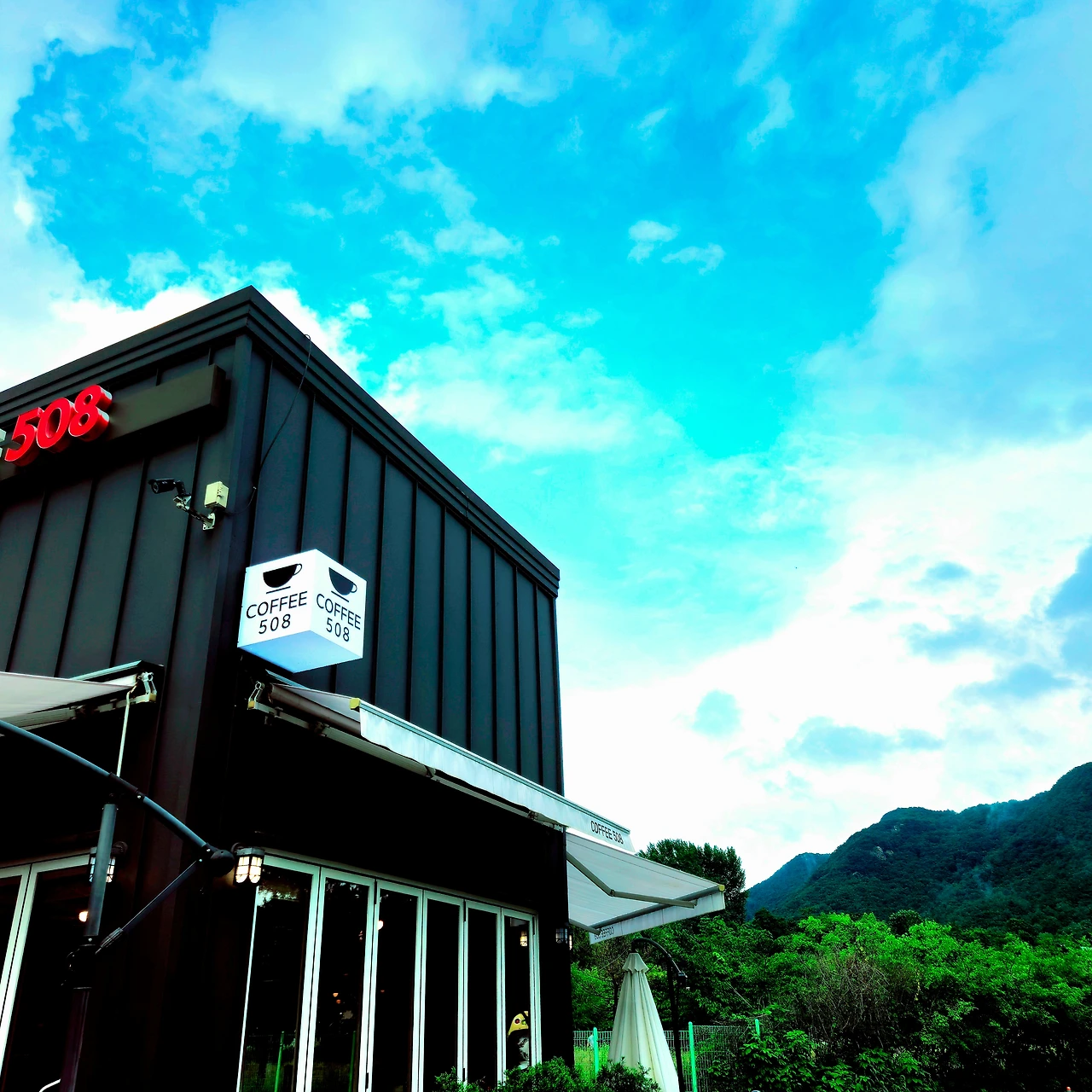 산을 배경으로 자리 잡은 그 카페는 마치 이 비를 피할 수 있는 작은 안식처처럼 느껴졌다. 카페 앞에 다다르자, 꼬리를 흔들며 나를 경계하는 골든 리트리버 한 마리가 눈에 띄었다. 카페에 들어가려고 하니, 큰 소리로 '컹컹'하고 짖는다. 나를 보며 경계의 눈초리를 보내면서도 꼬리를 좌우로 흔드는 것은, 본래 천성이 사람을 좋아하기 때문일 것이다.