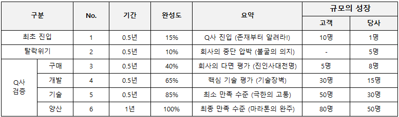 Q사에 벤더로 등록되기까지, 약 4년의 시간을 요약해 보면 아래와 같다.