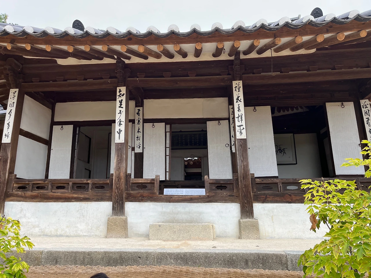 문성사는 이이를 모신 사당으로 오죽헌 왼쪽에 있다. 지붕을 받치는 앞 기둥은 아홉 번 장원급제한 기운을 받길 바라는 사람마다 만지는 통에 만질만질하게 윤이 났다. 오죽헌 뒷문은 사임당이 태어나고 후손들이 살기도 했던 안채와 사랑채로 이어졌다. 통로는 잦은 바람을 막기 위해 ‘ㄴ’자였으나 지금은 방문객을 위해 일자로 텄다는 해설이다. 건물마다 굴뚝 높이가 달라 가운데 사랑채는 높고 담벼락 가까운 방 옆은 낮았다. 높은 건 난방에 유리하고 낮은 건 연기가 넓게 퍼져 해충을 쉽게 쫓을 수 있다고 한다. 한옥은 방뿐 아니라 굴뚝조차 쓰임새가 모두 달랐다. 밖으로 나가는 길에는 ‘어제각’이 있다. 정조는 오죽헌에 율곡이 쓰던 벼루와 격몽요결이 보관되어 있다는 말에 두 물품을 잘 간수하라 당부했다. 그 분부에 따라 지어진 작은 전각에는 커다란 현판 위 그 세 글자가 쓰여있다. ‘어’ 자가 슬그머니 위로 올라간 게 스스로 뽐내고 싶어 한 모양. 아마 임금을 뜻하기 때문인 듯했다. 어린 학생들을 위해 이이가 지었다는 격몽요결 앞에 섰다. 돌아가면 일곱 살 우리 아이에게도 성인의 가르침을 알려볼까 한다.