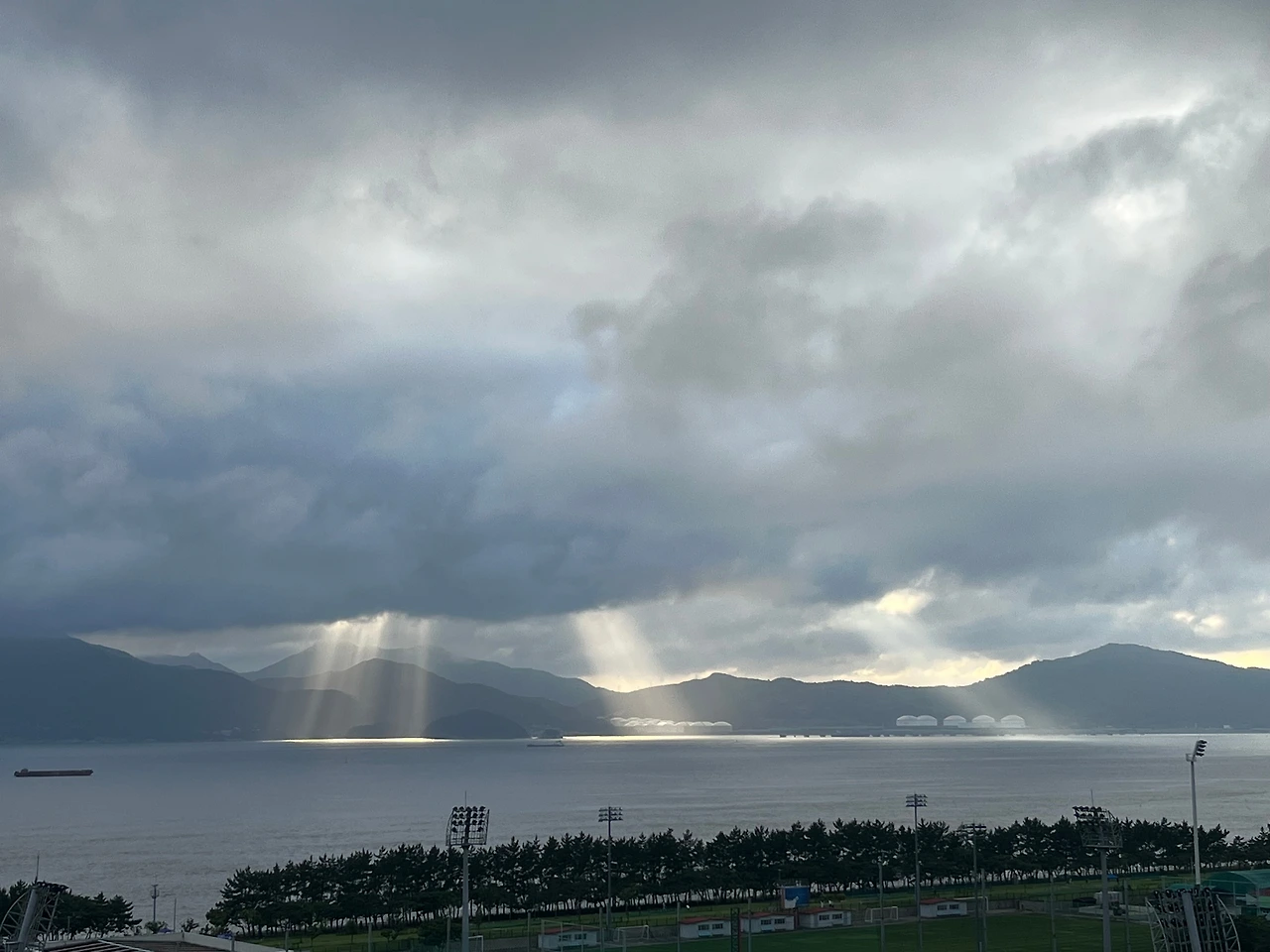 한적한 바닷가 구불구불한 길 운전을 아내에게 맡겼다. 이런저런 생각에 빠졌을 때 옆에서 감탄이 흘러나왔다. 저 아래 남해바다에 비친 윤슬이었다. 햇빛이나 달빛에 비치어 반짝이는 잔물결은 윗세오름을 내려와 한가로이 저녁 먹던 제주에 이어 두 번째였다. 진한 회색, 습기 가득한 먹구름 낀 하늘은 바다를 만나 경계가 불분명했다. 경험 많은 화가가 한두 번 부드럽게 붓질한 것마냥 보기 드문 광경이었다. 뒤이어 나온 구름 사이를 통해 바다로 내리쬔 햇볕과 함께 아름다운 그림을 만들었다.