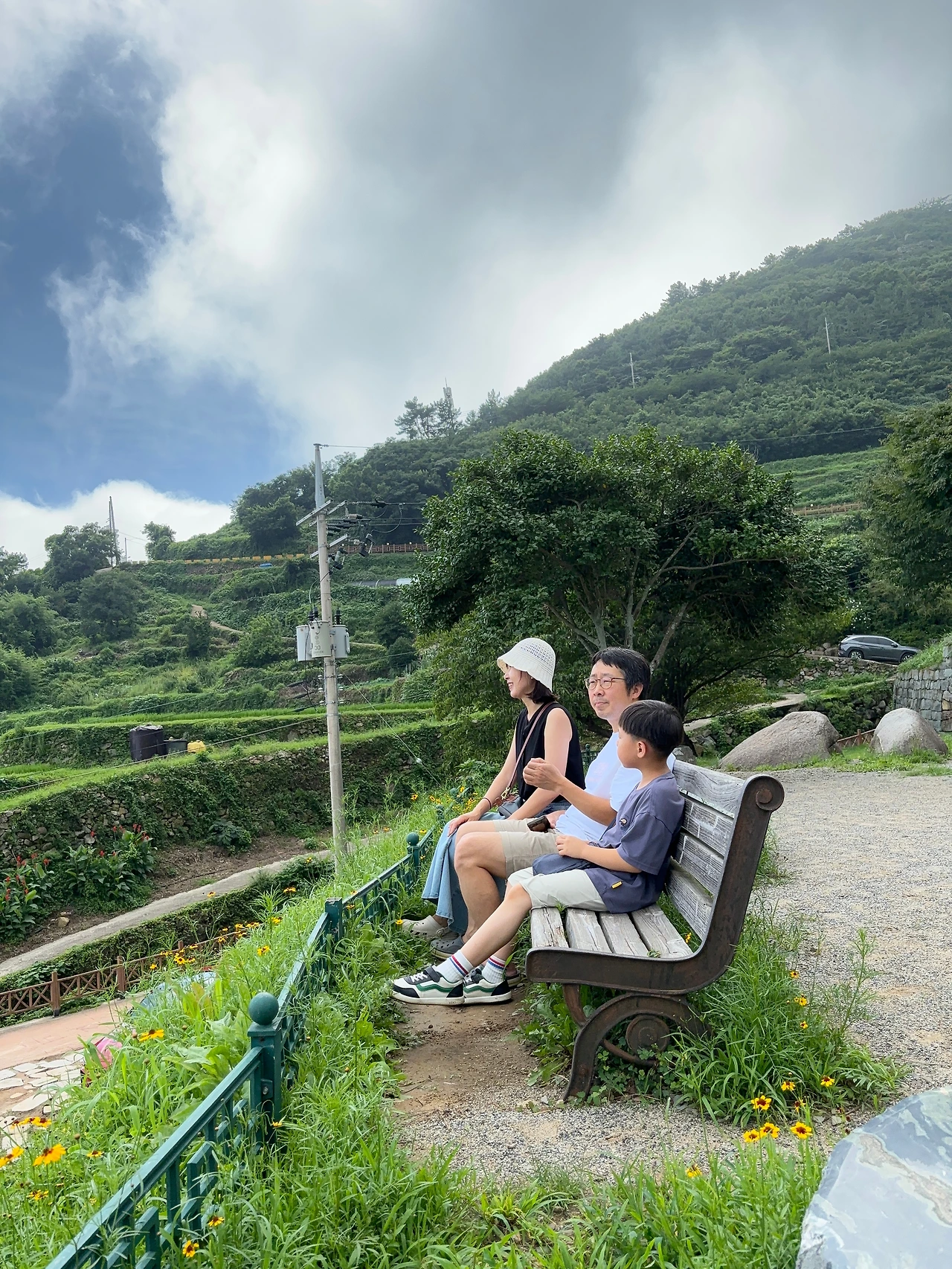 칠월 장마 끝자락, 세 식구는 남해로 향했다. 지난 12월 준비해 둔 반년의 기다림. 여느 여행처럼 역시나 설렌 마음에 새벽잠을 설쳤다. 다섯 시 반 비몽사몽 덜 깬 채 밖을 바라봤다. 이번 주 내내 흐린 날씨는 어제 잠깐 맑더니 오늘과 내일 폭우가 예보되었다. 아파트 텃밭으로 가 고추와 수박 덩굴 위에 지지대 심고 비 가림을 덮어 당분간 못할 돌봄을 미리 했다. 집에 돌아오니 벌써 일어난 아내가 아이 간식을 준비하고 있었다. 유부초밥과 커피, 어제 따 둔 호박, 깻잎 등 채소를 다 꾸렸을 즈음 아이 곁으로 가 얼굴을 쓰다듬었다. 수동 알람인 셈. 곧 일어난 아이와 금방 준비하고 길을 나섰다.