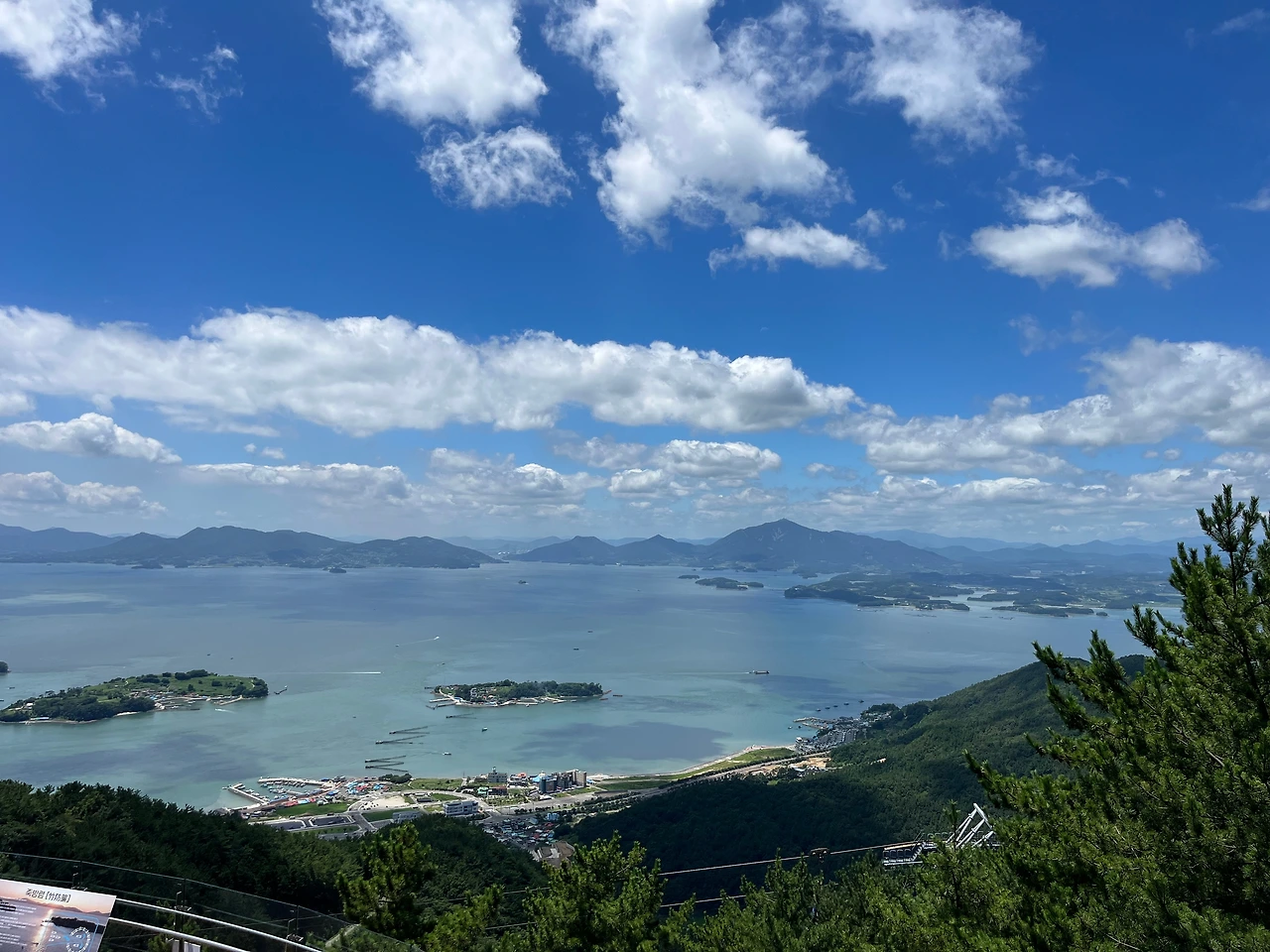 사천케이블카는 남해바다를 사이에 두고 사천시와 초양도를 잇는다. 사천시 삼천포대교에 닿은 언덕에서 출발하여 바다 건너 초양도에 잠시 섰다가 돌아와 뒤쪽 각산에 이른다. 사백 미터 남짓 산 전망대에 섰다. 수많은 섬이 바다 위 진한 녹색 빛깔로 몽실몽실 구름을 이루었고 하나하나 사람 손 닿지 않은 곳이 없었다. 어떻게 저런 작은 곳까지 삶터가 되었는지. 푸른 바다에는 어선들이 바삐 오갔고 온전한 모양의 멸치를 잡기 위해 죽방렴이 이곳저곳 설치되었다. 인근은 모두 한려해상국립공원, 오래 서서 즐길만했다. 뙤약볕 아래 힘겹게 오른 아이들도 즐거운 눈치였다.