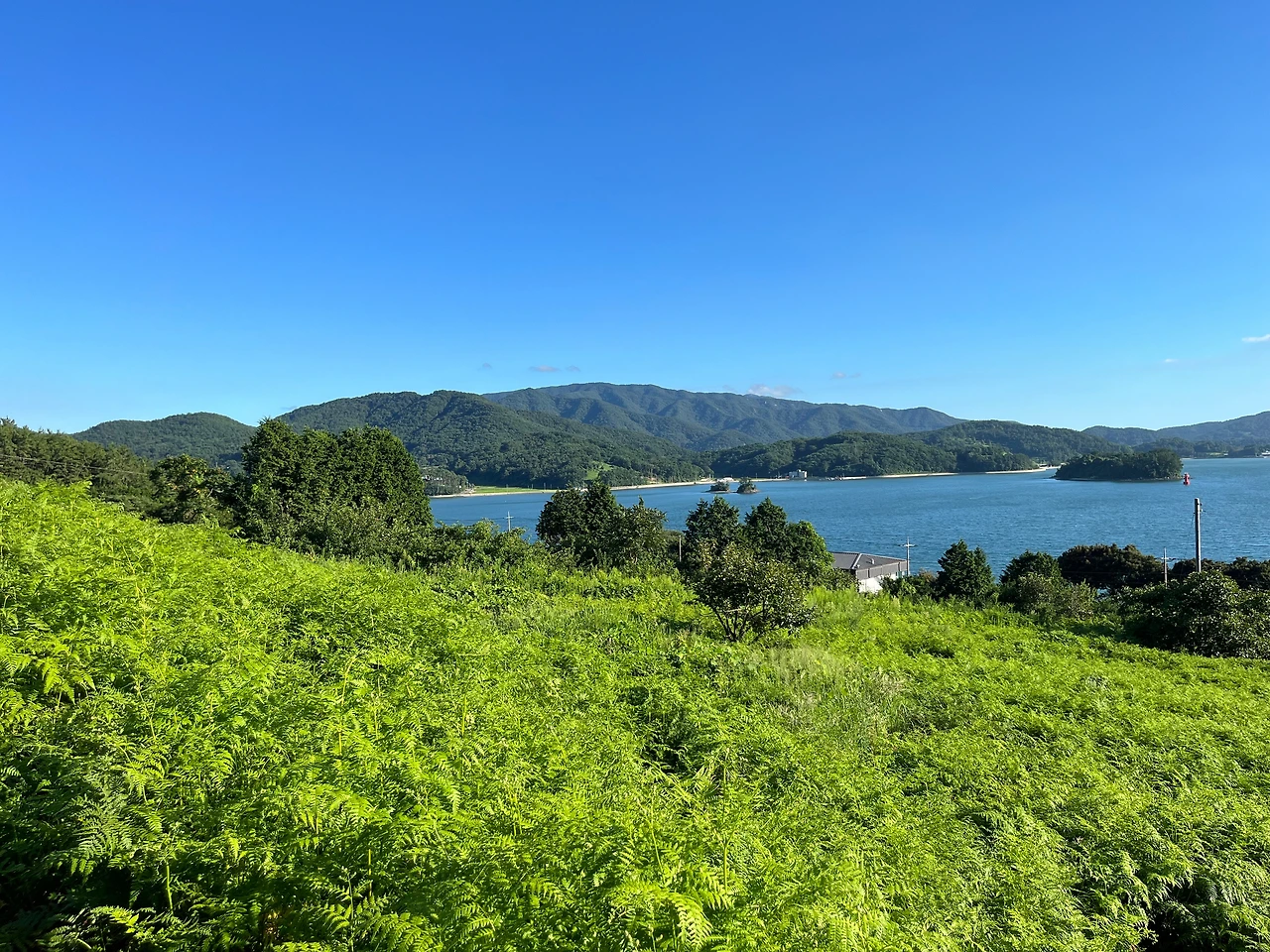 창선도는 우리나라에서 고사리가 가장 많이 난다. 흙이 비옥하나 대개 돌 많은 비탈이거나 깎아 만든 평지에 무성하다. 삼사월, 여린 것을 수확해 말려 두고 먹는 데 지금 칠월은 키가 크고 억세어 먹지 못한다. 다년생으로 냉해를 입으면 몇 년이 지나야 회복되기도 한다. 학교급식을 위해 산지와 무던히 가격 줄다리기하던 고사리가 문득 떠올랐다. 실제 모습은 이렇구나. 집으로 가는 내리막 입구에 섰다. 좁은 땅이 진녹색 너른 들판 같았다. 지족해협으로 눈을 돌리니 한가운데 다리 놓인 작은 섬에 사람들이 오갔다. 얼마 남지 않은 시간 내일이라도 가봐야겠다.