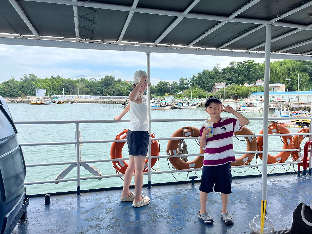 신수도는 사천에 있는 신수도차도선여객터미널을 통해 하루 여섯 번 오간다. 차도는 신수도 부속 무인도. 삼천포항 끝자락에 있는 터미널은 작은 여객선 한 척 댈 수 있는 부둣가다. 휴가철이라 그런지 섬에 있는 야영장이나 민박집을 이용하는 여행객이 많아 금세 꽉 찼다. 일찍 온 우리는 열 시 반, 미처 타지 못한 차량은 점심때가 넘어서 있는 다음 배편을 줄지어 기다린다.