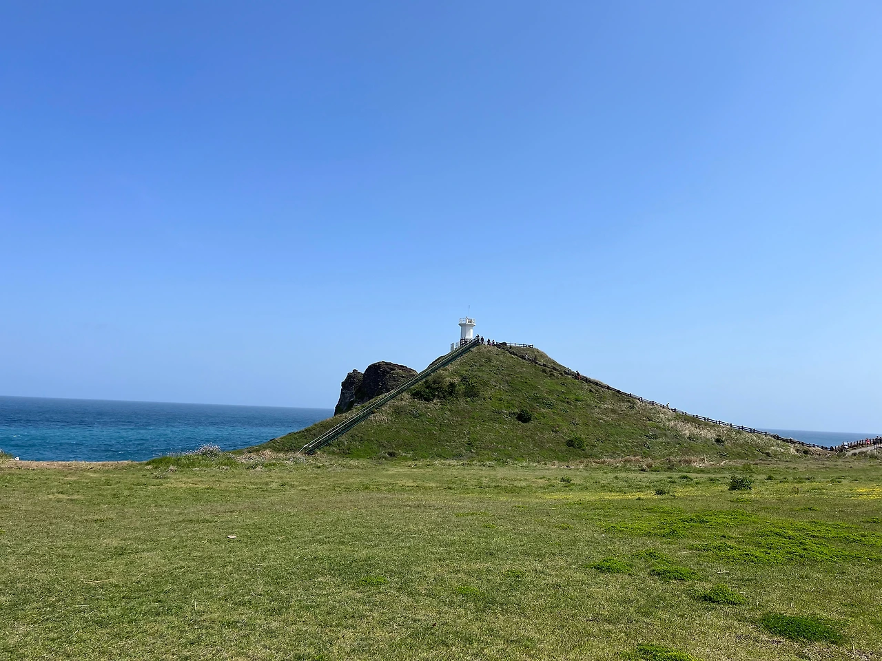 관광객은 우리뿐인 동네 주민들이 가는 음식점에서 진한 국밥 한 그릇 먹으며 잠시 쉬었다. 다음은 섭지코지란 말에 아이가 발끈했다. 줄곧 걸어 불만이 가득했으나 엄마가 가고 싶어 한다는 말로 겨우 꾀어 도착했다. 오후 두 시, 햇살이 뜨거웠다. 평일임에도 차와 사람으로 가득한 주차장을 지나 산책로를 따라갔다. 절벽 아래 소름 끼치도록 맑은 바다를 옆에 끼고 야트막한 언덕길을 가다 서다 주변에서 가장 높은 등대에 이르렀다.