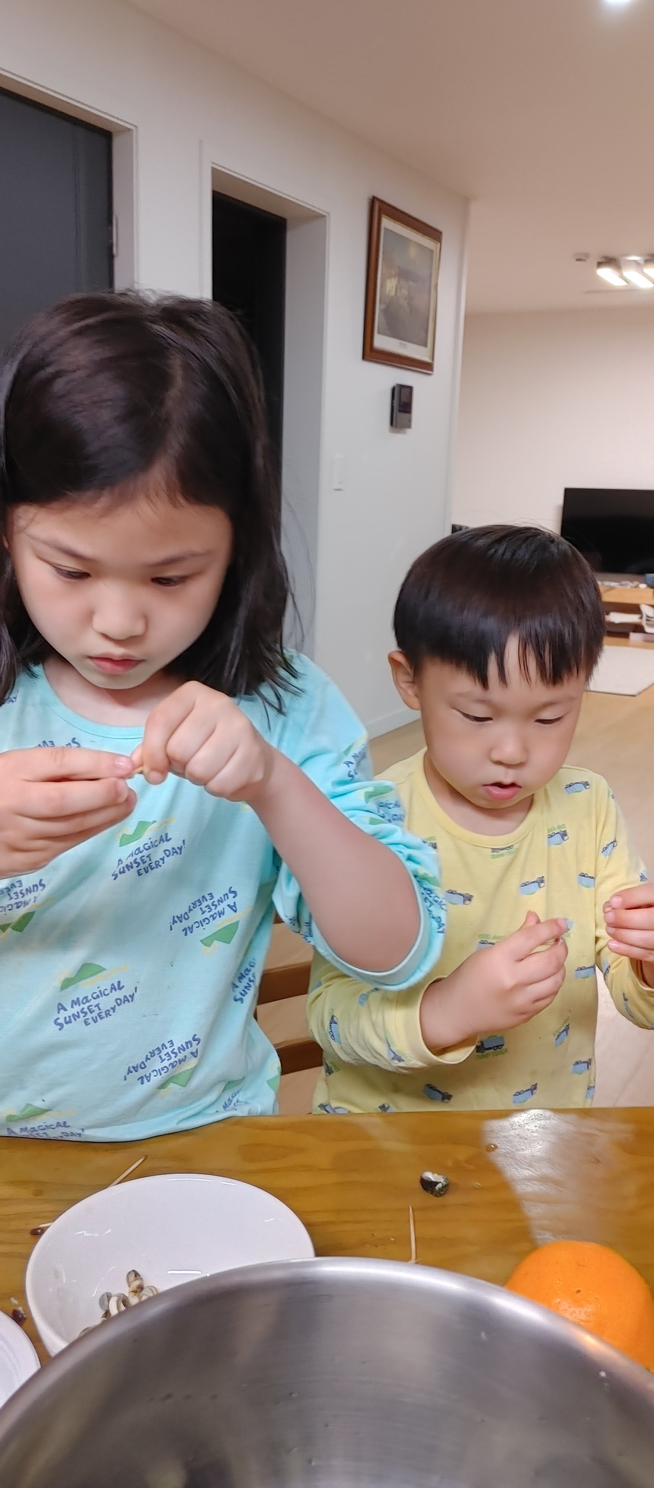 어둠을 뒤로 하고 안으로 들어왔다. 어제 반 통 잡아 해감해 둔 보말로 내일 아침에 죽을 끓이기로 했다. 굵은 소금을 넣고 껍데기를 여러 번 씻어 삶았다. 다른 것은 어려운 게 없었으나 살을 빼는 게 큰일이었다. 엄지손톱만 한 작은 조갯살을 발라내기 위해 모여 앉았다. 어른은 두런두런 얘기를 주고받으며 마음 비우기 좋았고, 아이들은 처음 하는 일에 신기해했다. 밥그릇 반이 채 될까 말까 한 양에 한 시간 정도 걸렸는데 혼자서는 하지 못했을 거다. 함께 하니 지루함이 없었다.