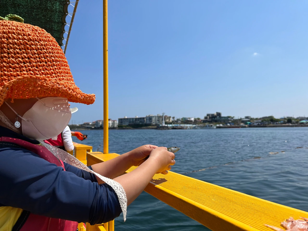 테우에 함께 오른 사람들이 잡은 물고기는 다양했다. 작은 복어와 놀래기, 베도라치에 대한 재미난 이야기 후 한 번씩 만질 기회가 있었다. 아이들은 까슬까슬한 배를 가득 부풀린 귀여운 복어에 반했다. 너도나도 모자 쓴 제 머리에 올리느라 북새통이었다.