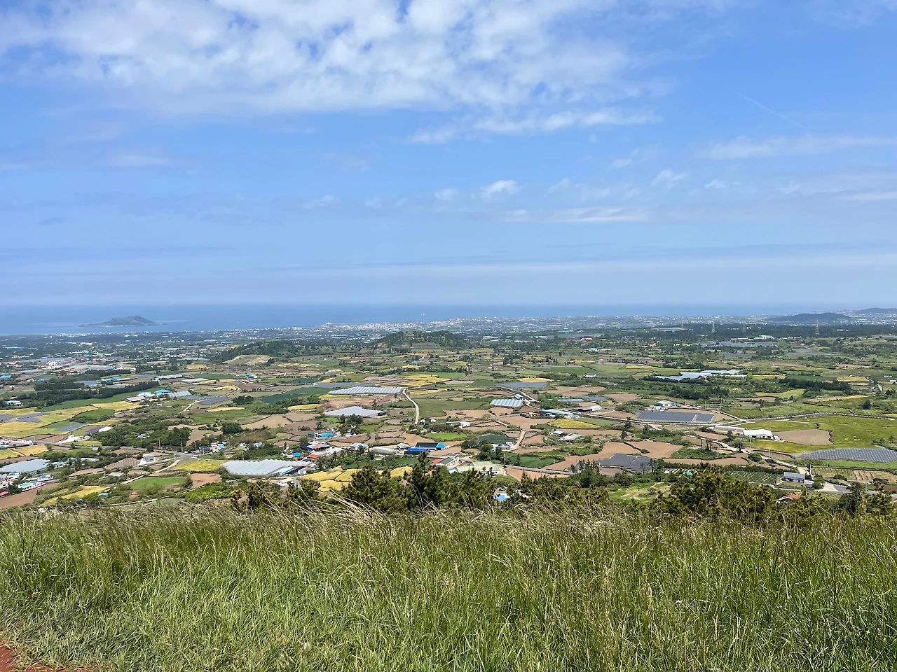 모두 함께 금오름에 올랐다. 아이들은 나뭇잎 깔린 경사진 흙길 앞에서 망설였다. 어른들의 거듭된 독려에 못마땅한 귤 모자 쓴 둘은 마치 짜기라도 한 듯 발을 세게 구르며 찡그렸다. 사랑스러운 얼굴. 간식거리가 있으면 더 좋았을 텐데 잘 달래어 올라갔다. 산길은 한두 사람이 간신히 지날 수 있게 좁았다. 그래서 제철 맞은 하얀색 찔레꽃은 달콤한 향기를 더 짙게 풍겼다. 풀줄기 사이에 거품 모양의 알집도 보였다. 거품벌레라고 하는데 정확한 것은 알 수 없었다. 군데군데 시야 넓은 곳에 쉴 때마다 마을과 바다가 점점 작아졌다. 편한 길로 왔으면 보지 못했을 풍경이었다. 정상 둘레 길까지 이십 분 정도의 짧은 거리였다.