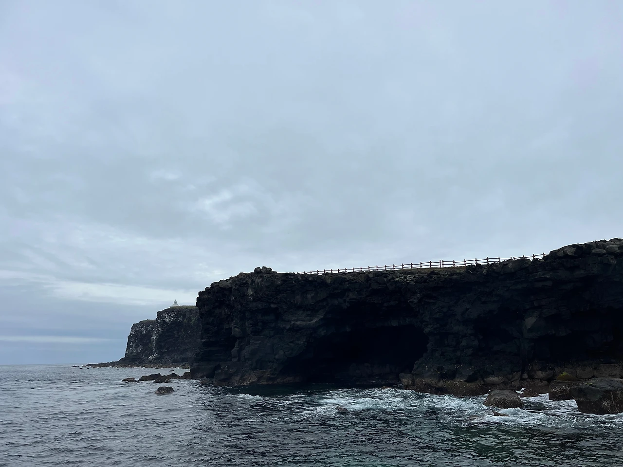 마라도는 모슬포 운진항과 송악산 인근 마라도 선착장 두 곳에서 배편이 있다. 운진항은 출발 약 두 시간 후로 돌아오는 시간이 정해져 있으나, 마라도 선착장은 승객이 길게 선택할 수 있다. 지난번 가파도 체류가 짧게 느껴진 데다 명물 자장면을 먹기로 해 마라도 선착장 출발 편을 골랐다. 신분증을 두고 와 숙소에 다시 가기도 했으나 아내가 좋아하는 흐린 날씨를 즐기며 기분 좋게 도착했다.