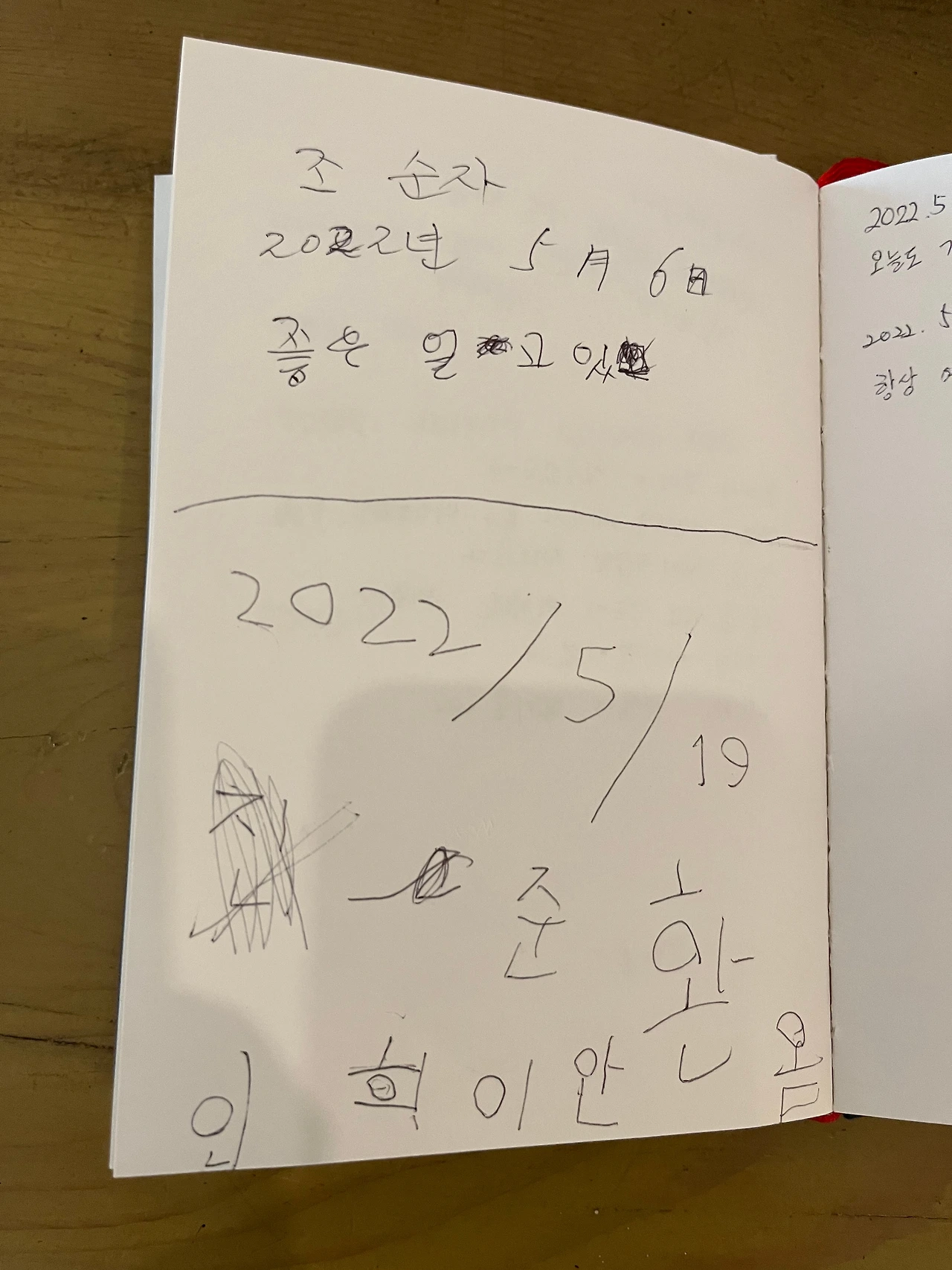 전시관은 두 개의 교실로 되어 있었다. 인접한 곳은 작가의 프로필이 게시된 입구를 지나 돌아가실 때까지 쓰던 작업실이 있었다. 그는 지금처럼 DSLR도 아닌 무거운 거치대가 붙은 기다란 카메라를 들고 많은 오름을 오르내리며 사진으로 남겼다. 보통 애정 없이는 불가능한 작업. 작품 대상은 따라비나 용눈이처럼 거주지 가까이 있어 사람들 생활에 함께했던 중산간 오름들이었다. 그래서인지 오름 외에도 들판에 가득한 보리나 가축들이 한가롭게 풀 뜯는 모습도 주요 소재였다. 두모악이란 갤러리 이름은 작가가 관심 있던 거친 자연과 생활력 강한 현지 주민의 공존이란 주제를 온전히 담았다. 전시관 구조는 특이했다. 새하얀 벽면 중간에는 네모난 구멍이 커다랗게 뚫린 벽이 가로로 돌출되어 있었다. 액자처럼 만들고 싶었던 모양으로 그 뒤에 서니 오가는 사람들도 작품이었다. 출구 가까이 넓은 테이블에 놓인 방명록을 아이가 단번에 펼쳤다. 몇 쪽 넘겨 우리 가족 이름을 큼지막하게 적었다. 다음번에 온다면 좀 더 다양한 느낌을 담아 적을 수 있을 거다.