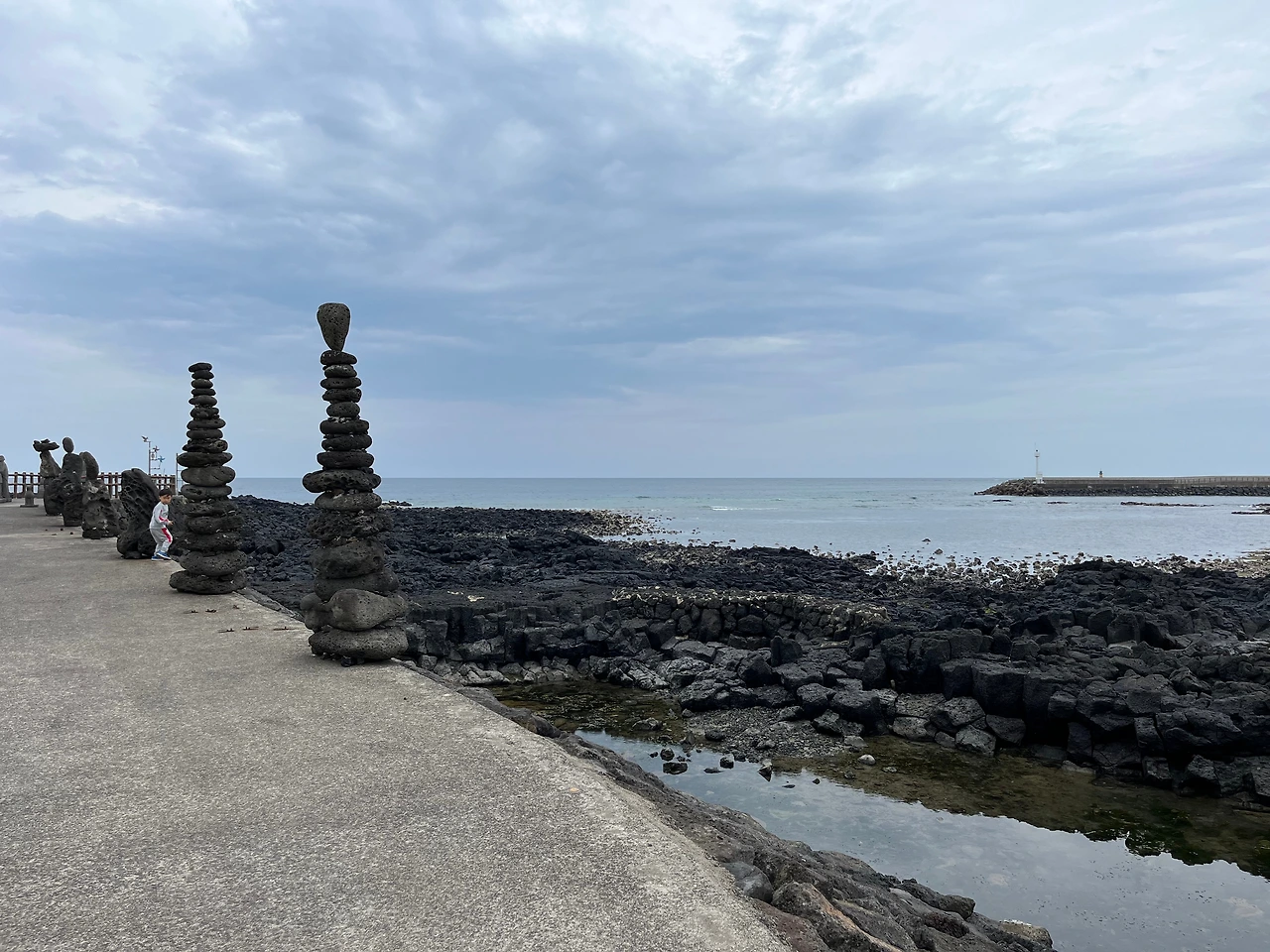 협재로 돌아가며 온평리 포구에 들렀다. 멀리 벽랑국에서 온 공주들이 처음 배에서 내려 고을라, 부을라, 양을라 삼 신인과 혼인지에서 각각 부부의 인연을 맺었다고 한다. 방파제를 따라 십수 개의 탑과 조형물이 있었다. 작은 포구는 제주도 다른 곳들처럼 아담하고 편안했다. 오늘 세 번째 손님이 온다. 처형 식구와 앞으로 사 일간 함께한다. 아이는 사촌 형이 빨리 왔으면 좋겠다고 숙소 가는 내내 재잘댔다.