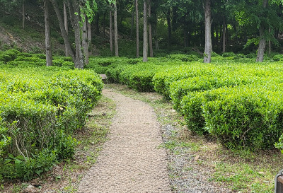 보살님의 말에 마음은 고마웠지만, 정토사에서 점심을 먹고 떡까지 먹은 터라 배는 이미 가득 차 있었다. 인사만 하고 차밭으로 향했다. 잘 정돈된 차밭길 사이로 하얀 마꽃이 고개를 내밀고 있었다.