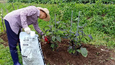 퇴비에 밀기울을 섞어 고추와 오이를 심었다.
