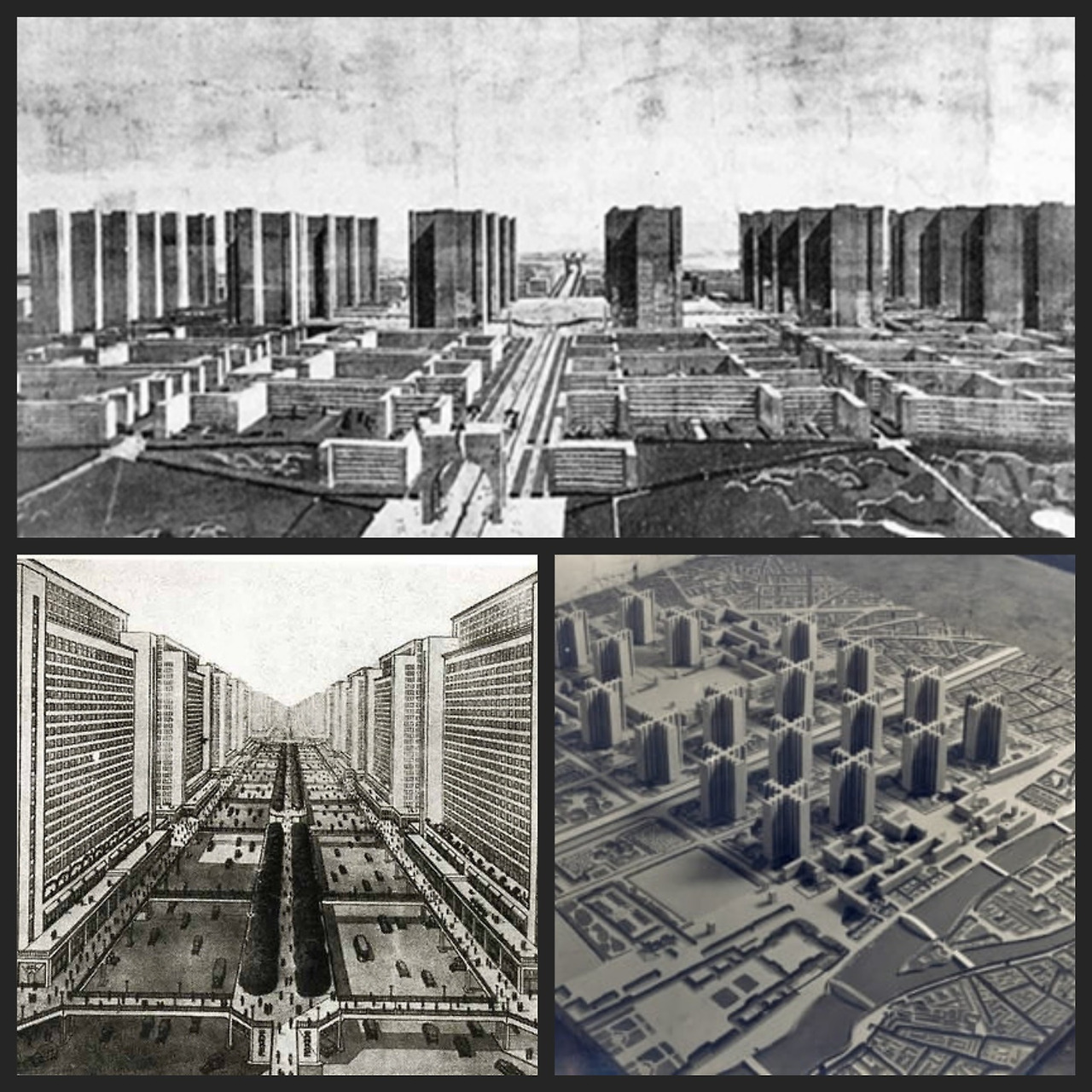 모더니즘 건축의 대표주자인 르 코르뷔지에(Le Corbusier, 1887-1965)는 이른바 빛나는 도시라고 잘 알려진 파리 리모델링 계획안을 제시했다. 그 내용은 다음과 같다.