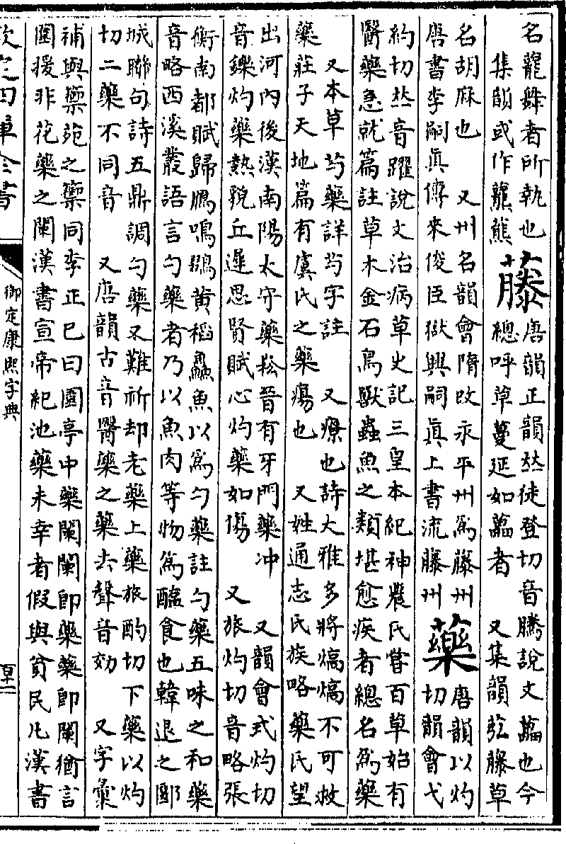 *** 藤:《說文》藟也. 今總呼草蔓延如藟者 - 康熙字典