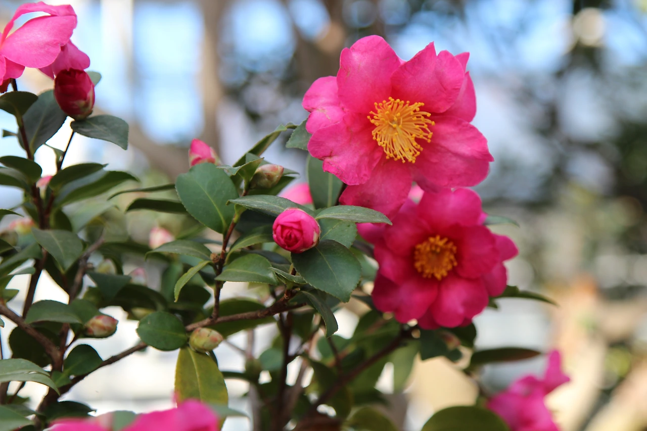 안평대군安平大君(1418~1453)이 현재의 서울 서촌 지역에 비해당을 짓고 지은 ‘비해당 48영’*은 조선시대 초기 서울 일원에서 정원을 가꾸는데 쓰인 꽃이며 나무를 알려주고 있다. 나는 48영 가운데 ‘금전화金錢花’는 금불초(Inula britannica)일 것이라고 검토한 글을 쓴 적이 있다.** 당시 비해당 48영의 제목을 살펴보면서 쉽사리 풀 수 없는 수수께끼로 마음 속에 남아 있는 숙제가 있었다. 제목에 “눈 속의 동백 (雪中冬白)”과 “반 즈음 핀 산다 (半開山茶)”가 있었고, “만발한 자미 (爛熳紫薇)”와 “백일홍 (百日紅)”이 있는 것이었다. 나는 동백과 산다는 동백나무(Camelia japonica)를 뜻하고, 자미와 백일홍도 모두 배롱나무(Lagerstroemia indica)를 가리키는 것으로 알고 있었다. 그렇다면 48영의 다른 식물들과 달리 이 2종에 대해서는 두 편의 시를 읊었단 말인가? 아니면 모두 서로 다른 꽃나무인가?