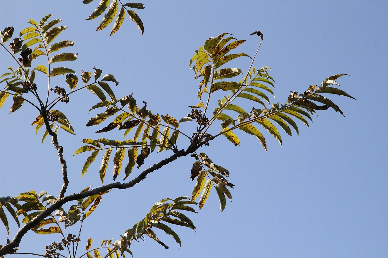 이제 <탐라지>의 금동목에 대한 설명, “잎은 가죽나무(樗) 같다. 수피에 가시가 있다. 거문고를 만들 수 있다.”를 바탕으로 제주도 식생 검토를 통해 금동목이 어떤 나무인지 검토한다. 중국 원산의 가죽나무(Ailanthus altissima) 잎은 우상복엽 형태이다. 수피에 가시가 있다는 설명은 나무의 중요한 식별자가 된다. 그리고 재목으로 거문고를 만들 수 있을 정도가 되자면 그 나무는 교목일 것이다.