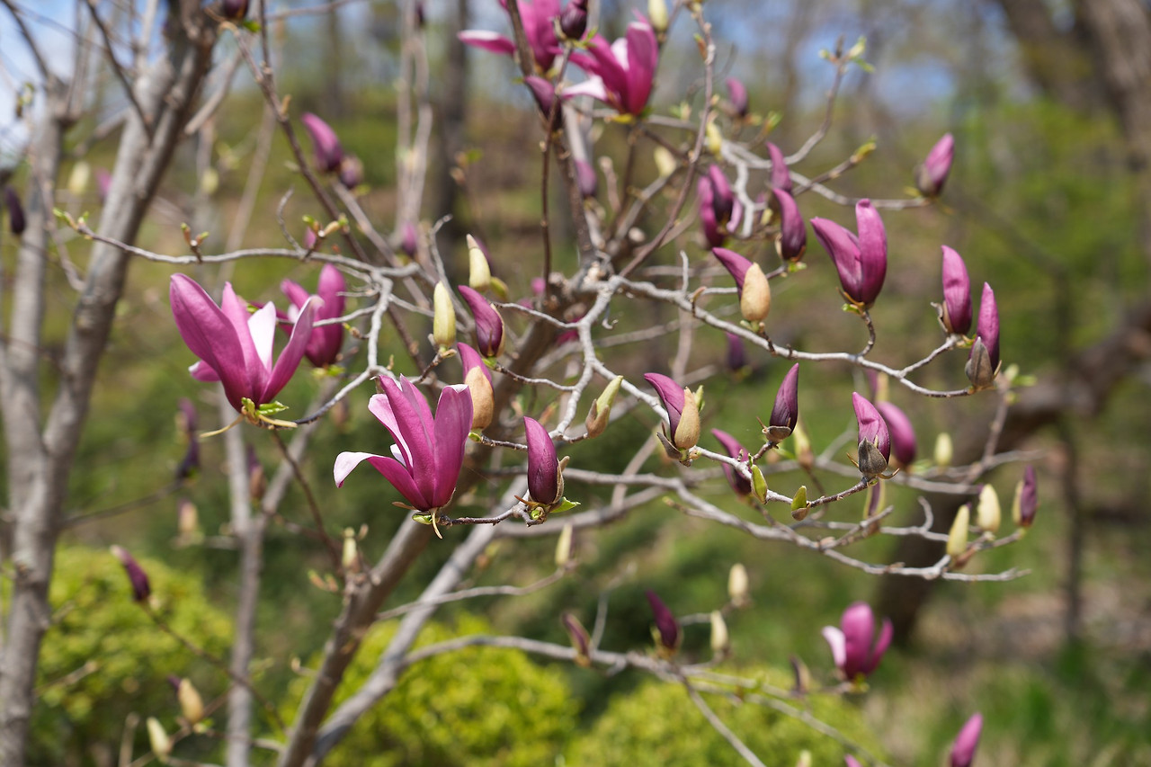 위 글에서 ‘가자茄子’는 가지(Solanum melongena)이다. 나는 이 글을 읽으면서, 『옛글의 나무를 찾아서』의 ‘고결한 봄의 전령사 목련, 백목련, 자목련 – 목란木蘭, 신이辛夷’를 쓸 때 참고했던, “높이는 3~4장丈으로 먼저 꽃이 핀 후 잎이 난다. … ‘붓꽃. 또한 가디꽃’이라고 한다.”**라고 기록한 『물명고』의 자목련을 설명한 구절이 떠올랐다. 당시 ‘가디’를 ‘가지’의 고어로 추정했지만, 가지 열매는 보통 땅을 향해 자라기 때문에 자목련을 왜 가지꽃이라고 했을까는 의문속에 남아 있었다. 그런데 신명규의 ‘옥란화玉欄花’ 묘사에서 “자주색 가지를 거꾸로 매달아 놓은 듯”하다는 표현을 보고서야 비로소 ‘가디꽃’이라고 기록한 배경을 이해할 수 있었다. 목련보다 10여일 늦게, 잎이 나지 않은 가지마다 자주색으로 피어 오르기 시작하는 자목련 모습을 떠올리자니, 영락없이 가지 열매가 거꾸로 매달려 있는 모습이었던 것이다.