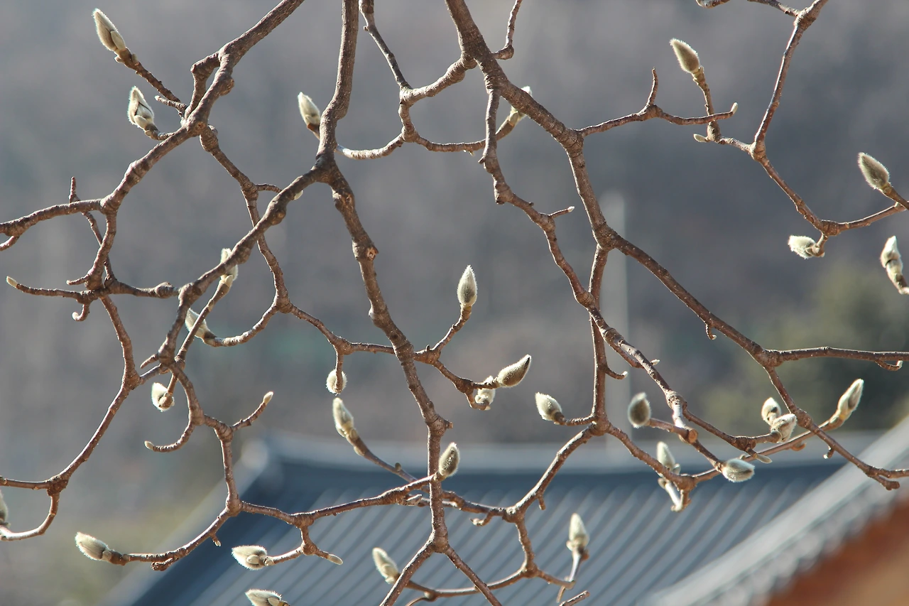 아직 찬 기운이 가시지 않은 이른 봄, 노란 개나리와 함께 하얀 목련이 풍성하게 피면 우리는 비로소 봄을 실감한다. <한국의 나무>에 의하면, 우리가 목련으로 부르는 흰색 꽃을 피우는 나무에는 제주도에 자생하는 목련(Magnolia Kobus DC.)과 중국남부지방 원산의 백목련(Magnolia denudata Desr.)이 있다. 우리나라 중부지방의 정원에는 대부분 백목련이 심어져 있지만 가끔 목련을 식재하기도 하다. 또한 꽃잎 양쪽이 모두 자주색인 자목련(Magnolia liliiflora Desc.)도 있고, 백목련의 변종으로 꽃잎 바깥쪽만 홍자색인 자주목련도 있다. 이 목련은 고대에도 시인이나 민초들의 사랑을 받았을 것으로 생각되나, 현존하는 <시경>의 시편에는 나오지 않는다. 그러나 고대 중국 남방 문학을 대표하는 굴원屈原(기원전 353~278)의 초사에는 나온다. 아마도 목련이 중국에서도 남부 수종이어서 그럴 것이다.