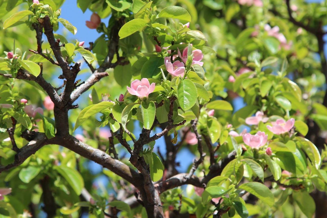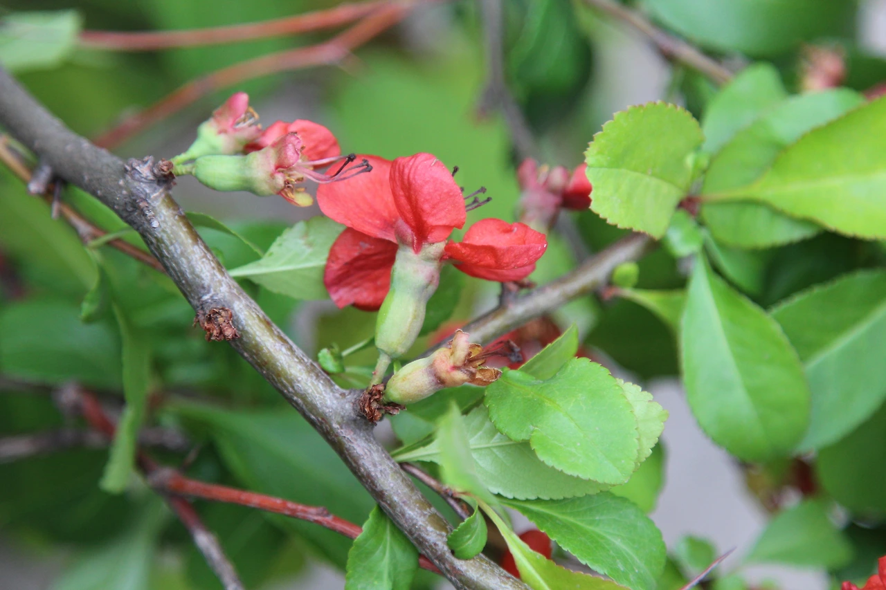 (좌) 모과나무 꽃, 2023.4.9 안동 풍산, (우) 명자꽃, 2020.4.25 성남 - 겹꼭지(重蒂)가 화경이 이중으로 되어 있다는 것을 뜻할까?