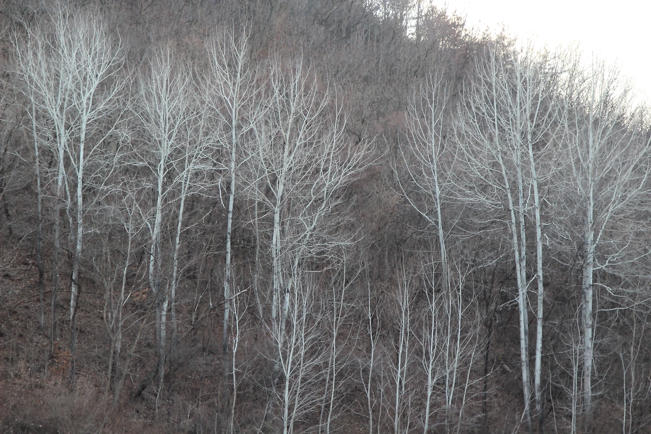 영시에도 “사시나무 잎처럼 떤다”******라는 표현이 있듯이, 동서양을 막론하고 사시나무는 미풍에도 떨리는 나무로 유명세를 탄 나무이다. 나는 오랫동안 이 유서깊은 표현의 사시나무를 만나고 싶어했다. 사시나무와 은백양의 교잡종으로 야산에 많이 심어진 은사시나무는 인근의 청계산에서도 쉽게 만날 수 있다. 은사시나무도 미풍에 떨리는 모습을 볼 수 있지만, 진짜 야생 사시나무를 보고 싶었던 것이다. 그러나 사시나무를 볼 기회는 좀처럼 오지 않았다. 그러다가, 2019년 7월 열두달숲 정선 답사에서 드디어 사시나무를 만났다. 가파른 비탈길을 앞서 가던 일행이 사시나무라고 말하는 소리를 듣고 반가운 마음에 발걸음을 재촉했다. 조금 거칠어진 얼룩덜룩한 회백색 수피를 어루만져 보고, 미풍에 떨리는 잎새들을 보면서 한참 동안 기쁨에 젖을 수 있었다.