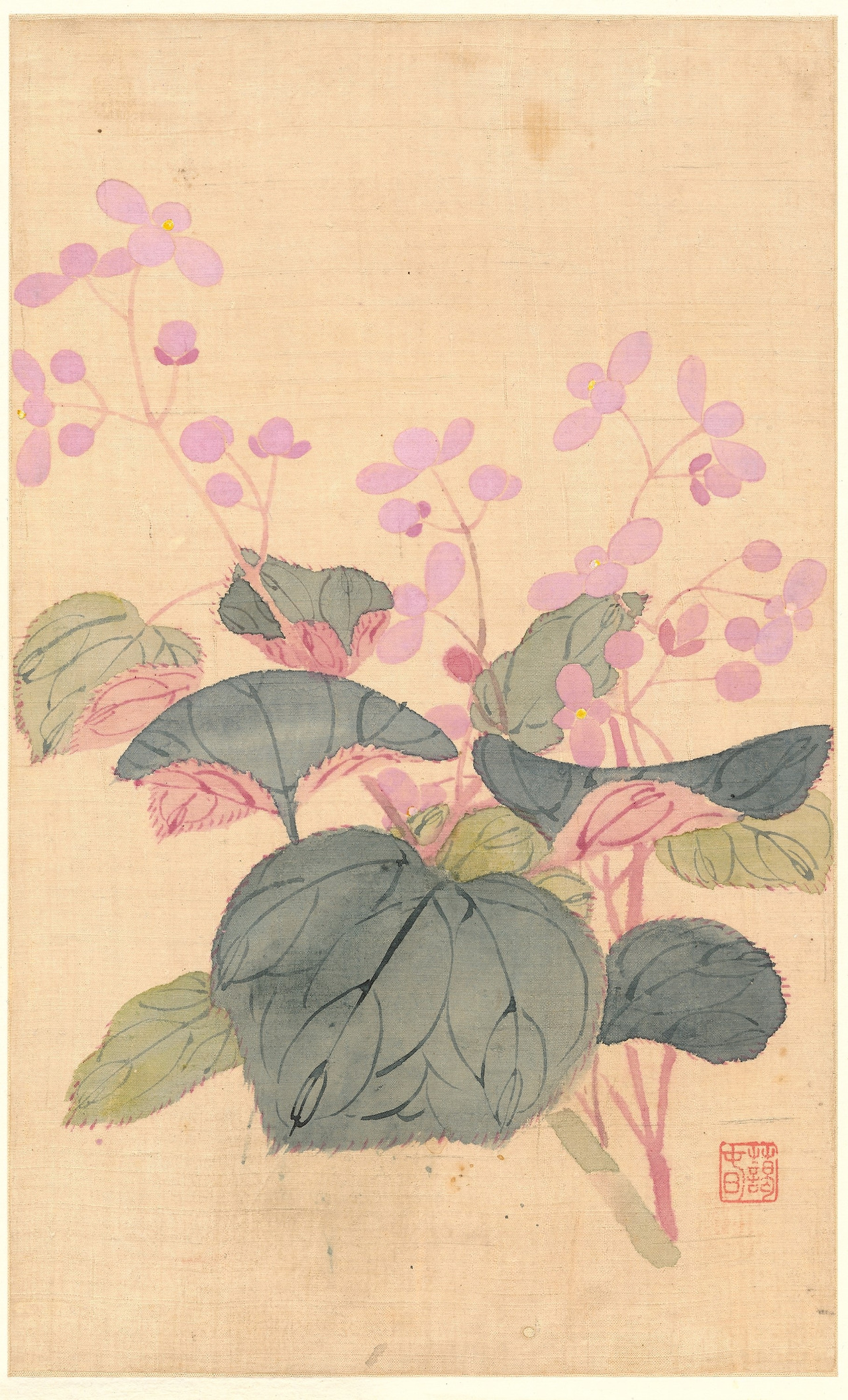 이 추해당은 <중국식물지>와 <식물의한자어원사전>에 의하면 현재에도 중국과 일본에서 추해당秋海棠으로 부르며, 학명은 Begonia grandis이다. 우리나라에서는 현재 ‘큰베고니아’로 부르는 원예용 꽃으로 중국 원산이다. 명나라 말기에 편찬된 <삼재도회三才圖會>에서 추해당 그림을 보면 영락없는 베고니아이다. 그리고, 우리나라 19세기 화가인 신명연申命衍(1808~?)의 산수화훼도山水花卉圖 중 추해당 그림을 보아도 베고니아 류임을 알 수 있다. 신명연은 추해당을 시로 읊기도 했던 자하紫霞 신위申緯의 아들이기도 하다.