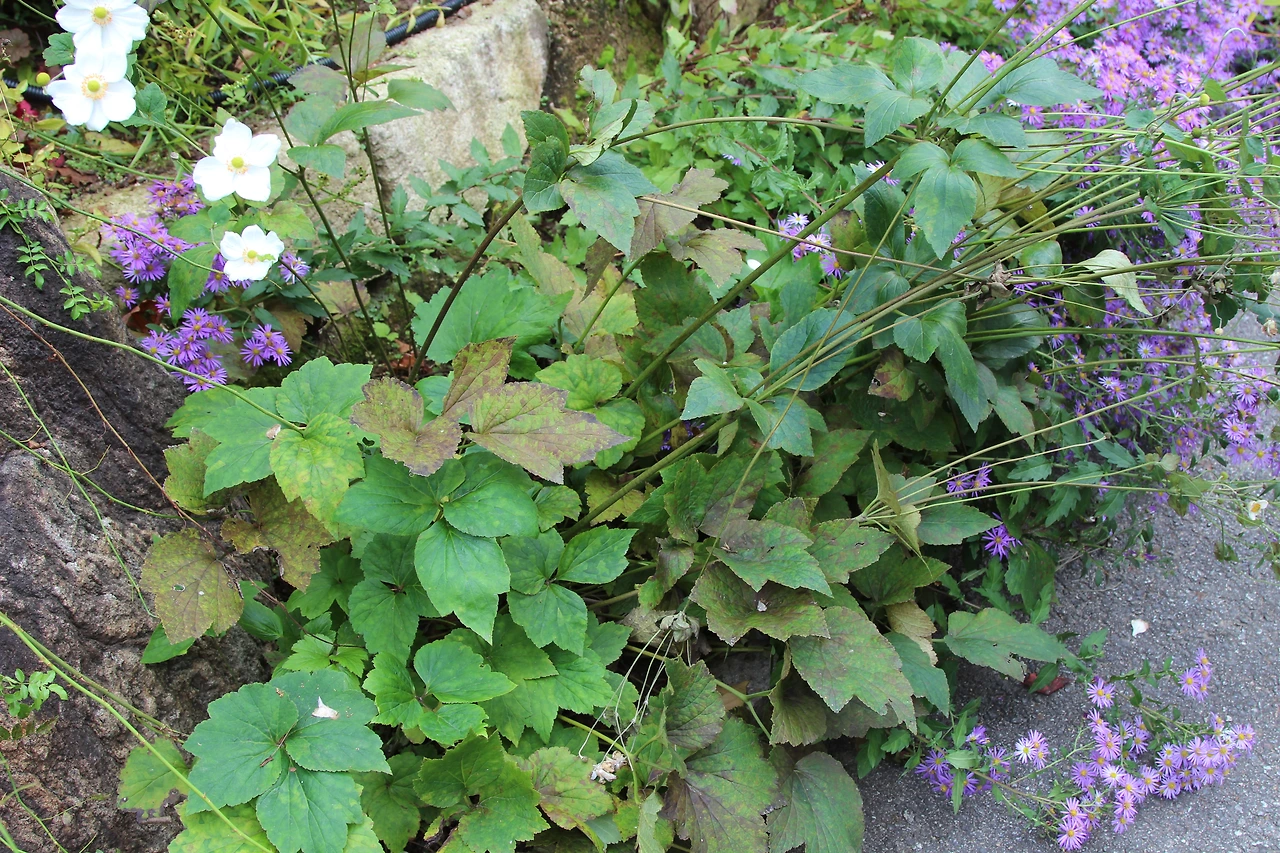 **秋牡丹草本 徧地蔓延 葉似牡丹差小 花似菊之紫鶴翎黃心 秋色寂寥 花間植數枝 足壯秋容 分種易活 肥土為佳 - 佩文齋廣羣芳譜 卷第三十四