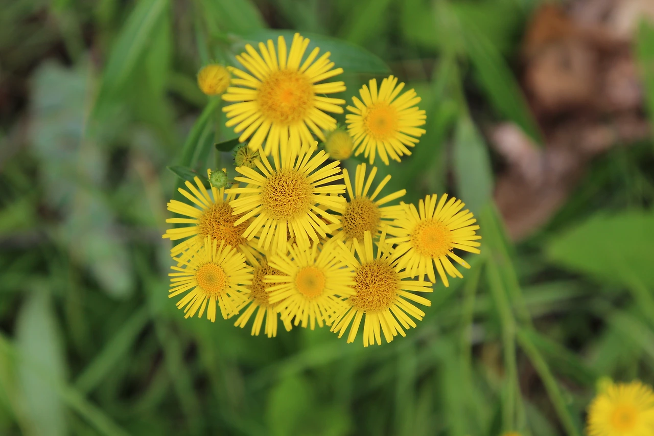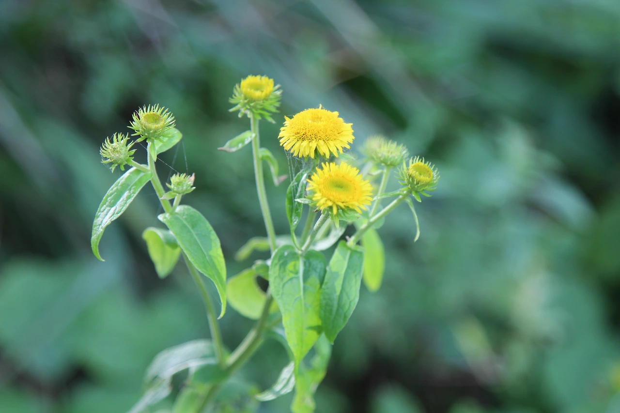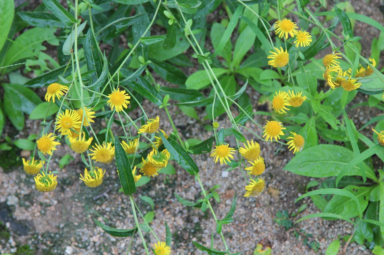 ***** 夏菊, 長一二尺 葉如旋花之葉 六七月深黃花 狀如小銅錢 生溝壑邊 션복화. 旋覆花, 金佛草, 金錢花, 滴滴金, 盜庚, 戴椹 仝 – 물명고